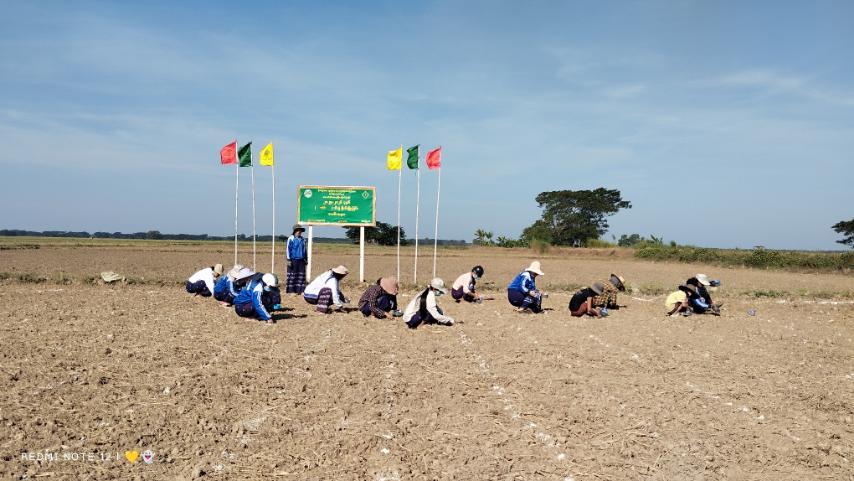 ဧရာဝတီတိုင်းဒေသကြီး၊ မြောင်းမြခရိုင်၊ အိမ်မဲမြို့နယ် ကွင်းကလေးကျေးရွာအုပ်စု တောင်သူဦးတင်ဝင်း၏ နေကြာစံပြကွက်စိုက်ပျိုးမည့် လယ်မြေ၌ ဆောင်းဆီထွက်သီးနှံ (နေကြာ)မျို့စေ့များအား စိုက်ပျိုးခြင်းအခမ်းအနားကို ယမန့်နေ့ နံနက်ပိုင်းက ကျင်းပခဲ့သည်။