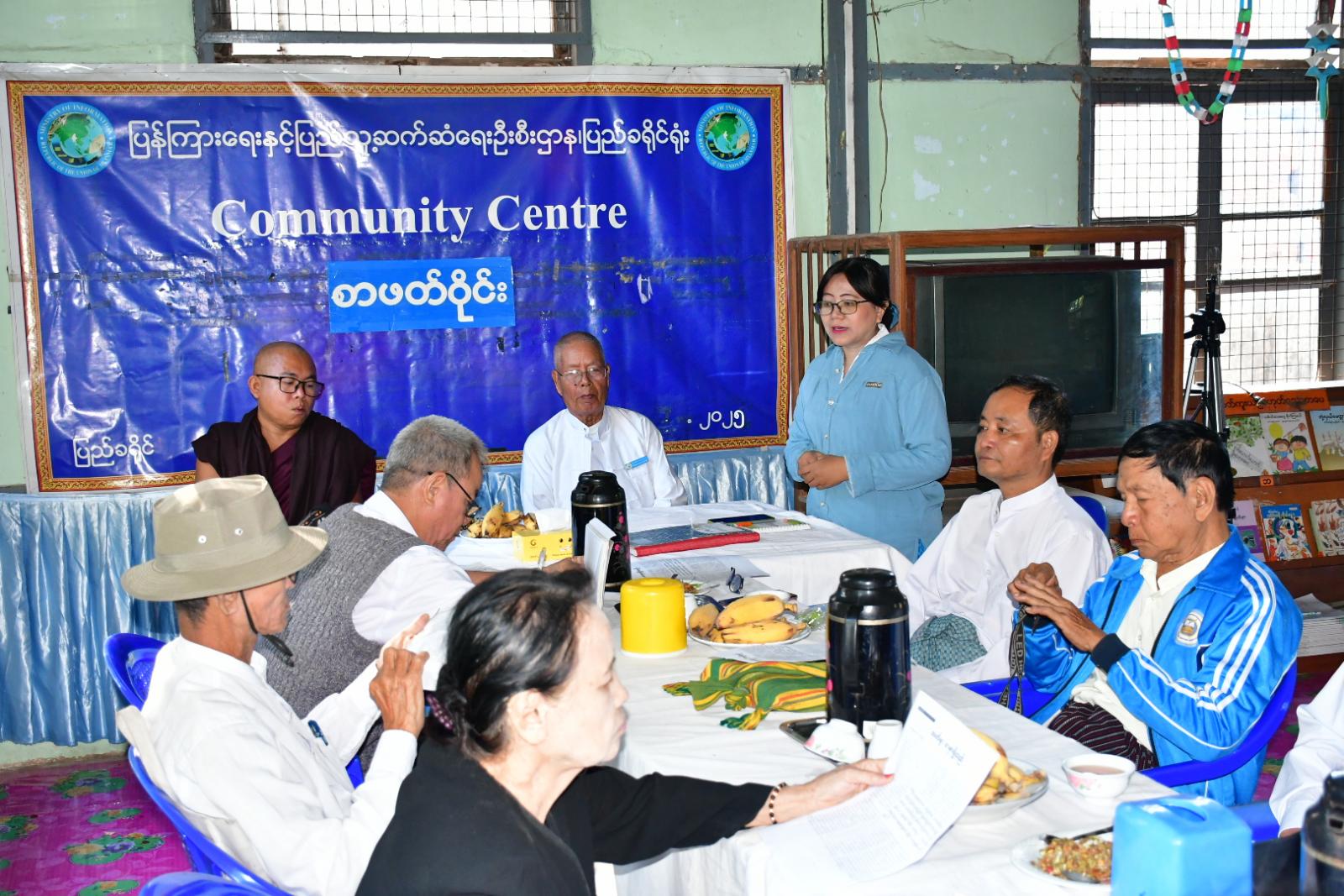ပြည်ခရိုင် ပြန်ကြားရေးနှင့်ပြည်သူ့ဆက်ဆံရေးဦးစီးဌာနရုံး လူထုအခြေပြုဗဟိုဌာန (Community Centre) ခန်းမ၌ ယနေ့နံနက်ပိုင်းက ပြန်ကြားရေးနှင့်ပြည်သူ့ဆက်ဆံရေးဦးစီးဌာနနှင့် ဆုံစည်းရာ Book Club အဖွဲ့တို့ လစဉ် ပူးပေါင်းဆောင်ရွက်သည့် စာဖတ်ဝိုင်း ကျင်းပပြုလုပ်သည်။