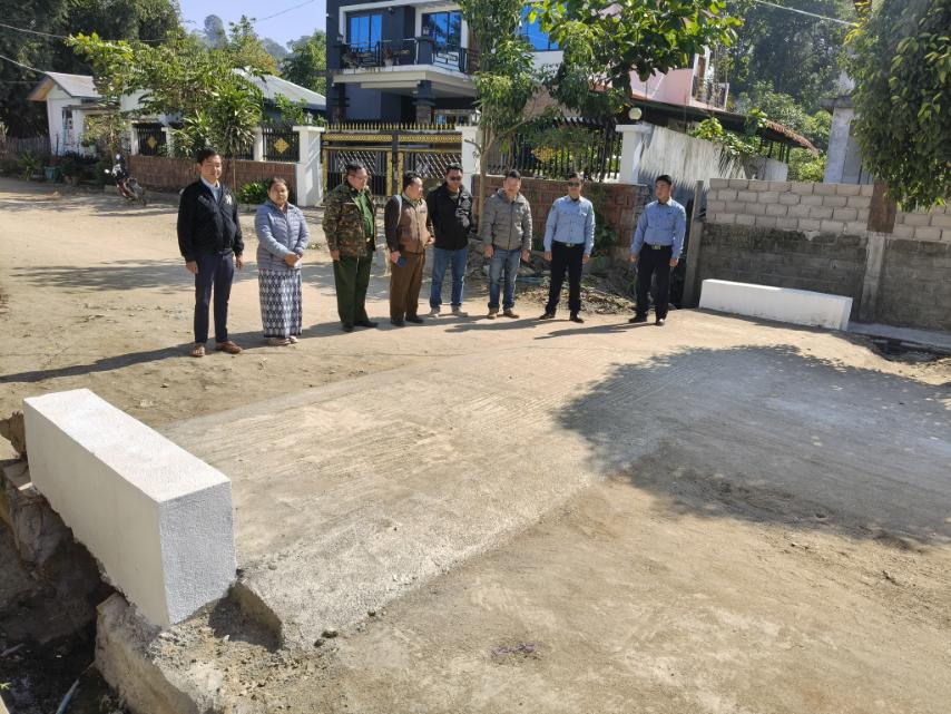 အဆိုပါလုပ်ငန်းပြီးစီးမှု ကွင်းဆင်းစစ်ဆေးရာတွင် မြို့နယ်တည်ဆောက်ရေးနှင့် အရည်အသွေးစစ်ဆေးရေးကော်မတီဥက္ကဋ္ဌ၊ မြို့နယ်အုပ်ချုပ်ရေးမှူး ဦးဟန်ဝင်းလတ်နှင့် အဖွဲ့ဝင်များက မိုင်းခတ်မြို့အတွင်း ၂၀၂၅-၂၀၂၆ ခုဘဏ္ဍာရေးနှစ်တွင် ဆောင်ရွက်ပြီးစီးခဲ့သည့် ငွေလုံးငွေရင်းလုပ်ငန်းများအနက် အမှတ်(၁)ရပ်ကွက်၊ ပါဆံကျ (စစ်မှုထမ်းဟောင်းအိမ်ရာအတက်လမ်း) ကွန်ကရစ်ခင်းခြင်း အရှည်၂၂ဝပေ၊ အကျယ် ၁၂ ပေ၊ ထု ၆ လက်မရှိ ခွင့်ပြုငွေကျပ် ၁၆.၃၀ သန်းနှင့် အမှတ်(၁)ရပ်ကွက်၊ အောင်မိုးဟိန်းလမ်း Slab Culvert (၁)စင်း ၈ လက်မထုရှိ ခွင့်ပြုငွေကျပ် ၆.၈၈၅ သန်း၊ စုစုပေါင်းခွင့်ပြုငွေကျပ် ၂၃.၁၈၅ ဖြင့်ဆောင်ရွက်ပြီးစီးမှုအခြေအနေတို့ကို ကြည့်ရှုစစ်ဆေးရာ မိုင်းခတ်မြို့နယ် စည်ပင်သာယာရေးဌာနမှ အမှုဆောင်အရာရှိ ဦးအားဝေနှင့် တာဝန်ခံအင်ဂျင်နီယာ ဦးအောင်မြင့်မြတ်တို့က လိုက်လံရှင်းလင်းပြသခဲ့ကြောင်း သိရသည်။