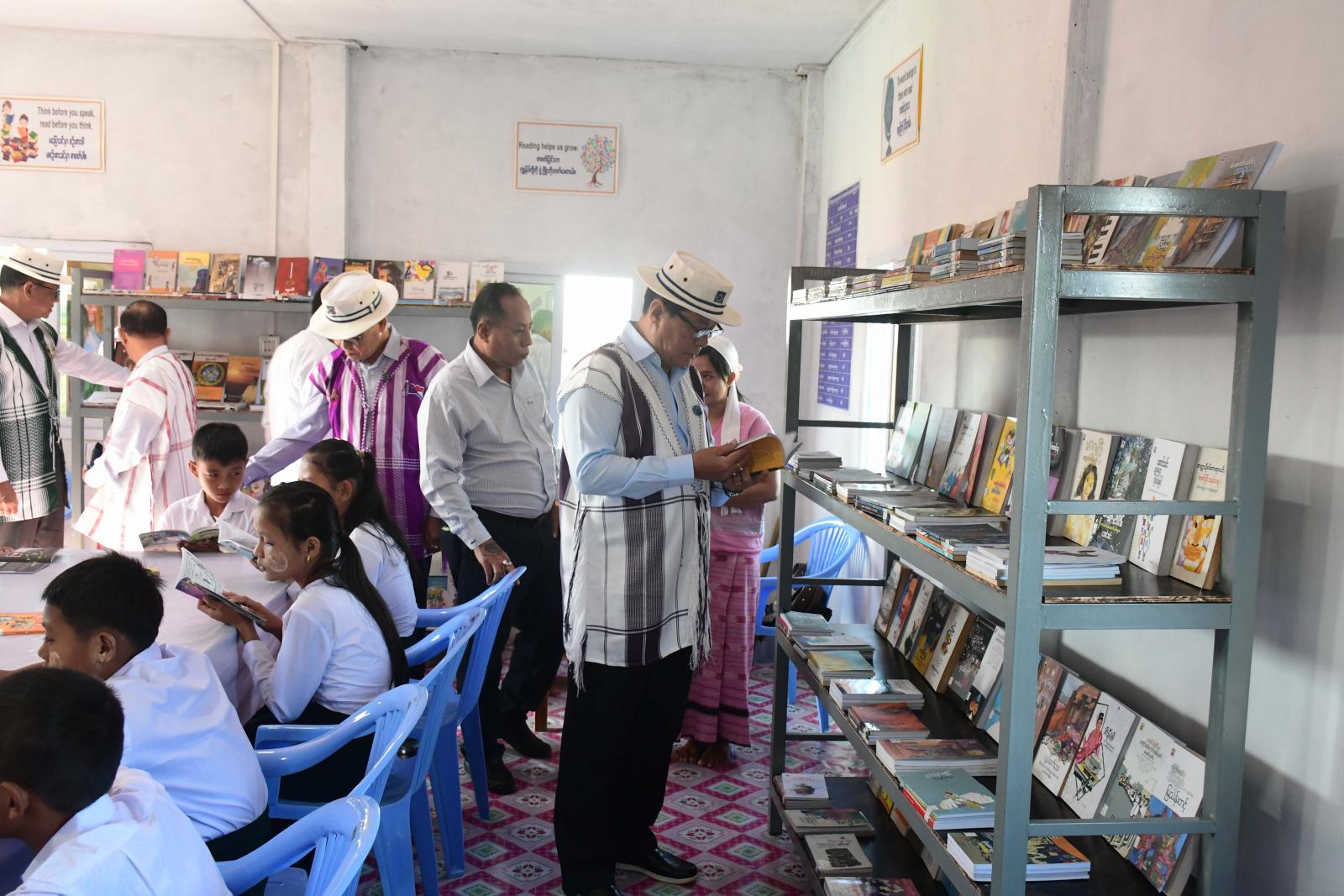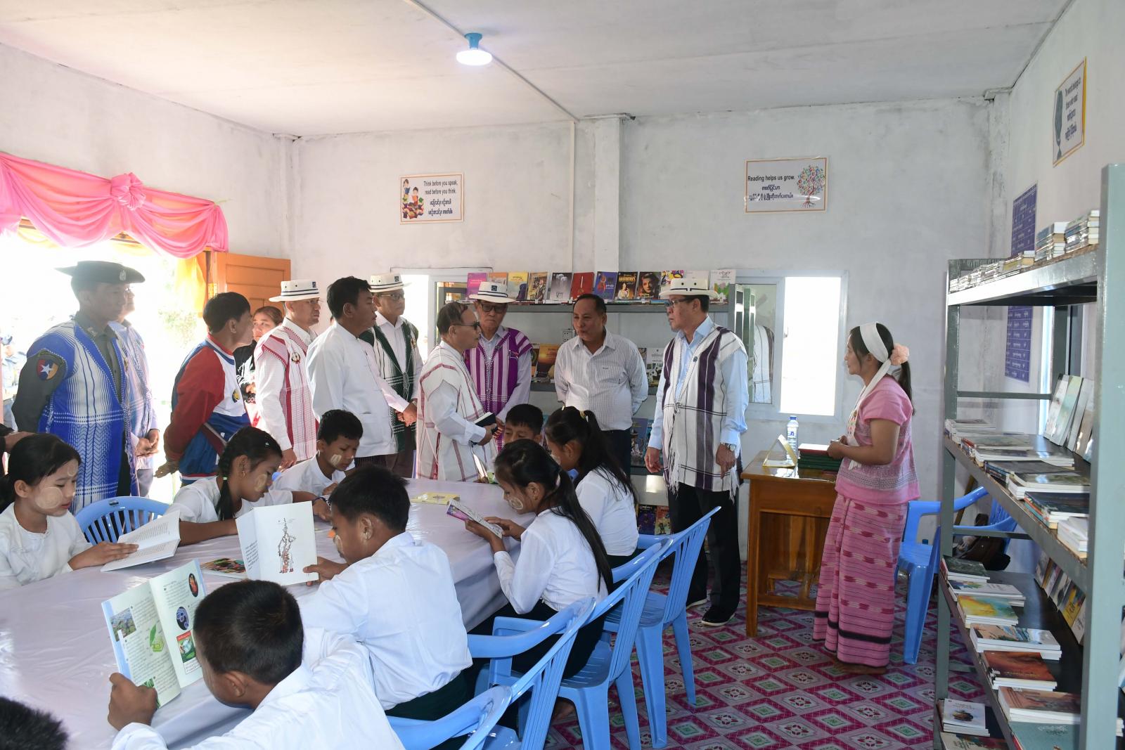 ထို့နောက် ပြည်နယ်ဝန်ကြီးချုပ်နှင့်တာဝန်ရှိသူများသည် စာကြည့်တိုက်အဆောက်အဦအား အမွှေးနံ့သာရည်များပက်ဖျန်းပေးကြပြီး စာကြည့်တိုက်အတွင်း ပရိဘောဂများဖြင့် သုတ၊ ရသစာအုပ်စာစောင်များအား ပညာရပ်များအလိုက်ခင်းကျင်းထားရှိမှု၊ ဒေသခံများမှ စာအုပ်၊ စာပေလာရောက်လေ့လာဖတ်ရှုနေမှုအခြေအနေများကို ကြည့်ရှုအားပေးပြီး တာဝန်ရှိသူများကို လိုအပ်သည်များမှာကြားခဲ့သည်။