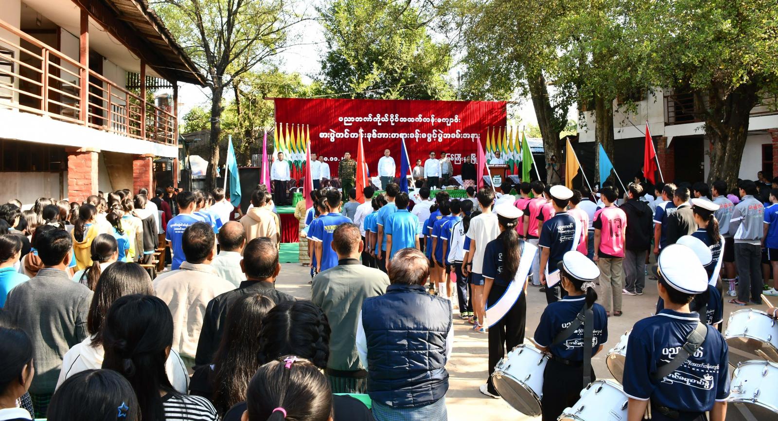 ထို့နောက် စားပွဲတင်တင်းနစ်အားကစားခန်းမဖွင့်ပွဲအခမ်းအနားကိုကျင်းပရာ ပြည်နယ်ဝန်ကြီးချုပ် ဦးခက်ထိန်နန်က ကြိုဆိုနှုတ်ခွန်းဆက်စကားပြောကြားပြီး ပြည်ထောင်စုဝန်ကြီးက ကျောင်းသား/ကျောင်းသူများ ကိုယ်ခန္ဓာကျန်းမာကြံ့ခိုင်ရေးနှင့် စိတ်ဓာတ်ကြံ့ခိုင်မှုအတွက် အားကစားသည် အလွန်အရေးပါသော အခန်းကဏ္ဍမှပါဝင်နေကြောင်း၊ စားပွဲတင်တင်းနစ် အားကစားနည်းသည် ကျန်းမာရေးအတွက်သာမက ဉာဏ်ရည်ဉာဏ်သွေး၊ မျက်စိအားကောင်းခြင်း၊ ဆင်ခြင်တုံတရားနှင့်လျင်မြန်သော တုံ့ပြန်မှုများကိုဖွံ့ဖြိုးစေသောအားကစားနည်းတစ်ခုလည်း ဖြစ်ပါကြောင်း၊ နိုင်ငံတော်အစိုးရအနေဖြင့်လည်း ကျန်းမာသန်စွမ်းသော လူငယ်များသည် နိုင်ငံတော်၏ အနာဂတ် အာမခံချက်ဖြစ်သည်ဟူသောမူဖြင့် နိုင်ငံတော်၏အနာဂတ်ကိုထူထောင်မည့်လူငယ်များ ကိုယ်စိတ်နှစ်ဖြာဖွံ့ဖြိုးတိုးတက်စေရေး၊ အားကစားစိတ်ဓာတ်ပြန့်ပွားစေရေးတို့ကို အထူးဦးစားပေးဆောင်ရွက်လျက်ရှိပါကြောင်း၊ သို့ဖြစ်ပါ၍ ယခုလိုကျောင်းများတွင် အားကစားလှုပ် ရှားမှုများ ပိုမိုကျယ်ပြန့်စွာ ဆောင်ရွက်နိုင်ရေးနှင့် အားကစားစွမ်းရည် မြင့်မားရေးတို့အတွက် လိုအပ်သော အထောက်အပံ့များကို ဆက်လက်ပံ့ပိုးပေးအပ်သွားမည်ဖြစ်ပါကြောင်းနှင့် ယနေ့အားကစားခန်းမမှတစ်ဆင့် အားကစားထူးချွန်သူအမြောက်အမြား ပေါ်ထွန်းလာအောင် ကြိုးစားကြစေလို ကြောင်း တိုက်တွန်းမှာကြားသည်။
