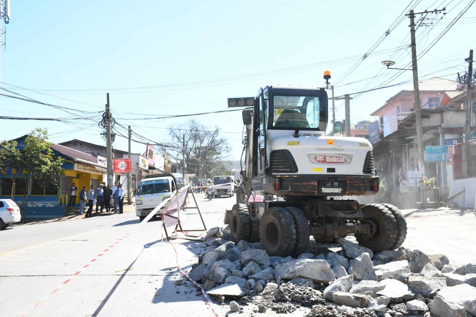 ဆက်လက်၍ အနောက်မြို့ပတ်လမ်းအဆင့်မြှင့်တင်ခြင်းလုပ်ငန်း(ဝါးပြားလမ်းဆုံ)မှ ကျောက်တစ်လုံးလမ်းဆုံအထိ ကွန်ကရစ်လမ်းခြင်းနှင့် လမ်းပခုံးပြုလုပ်ခြင်းလုပ်ငန်းများအား ကုန်လမ်းပို့ဆောင်ရေးညွှန်ကြားမှုဦးစီးဌာန၊ စစ်ဆေးရေးမှူး ဦးစိုင်းကြည်တစ်၊ မြို့နယ်လမ်းဦးစီးဌာန၊ ဦးစီးအရာရှိ(မြို့ပြ)ဒေါ်ခင်နှင်း၊ တောင်ကြီးမြို့နယ်စည်ပင်သာယာရေးဌာန၊ အမှုဆောင်အရာရှိ ဦးကျော်မင်းထိုက်၊ ရှမ်းပြည်နယ်(တောင်ပိုင်း)အမှတ်(၁၁၇)ဒုတိယာဉ်ထိန်းရဲတပ်ဖွဲ့ ရဲမှူး မိုးကျော်ဟိန်းနှင့် တာဝန်ရှိသူများက လုပ်ငန်းဆောင်ရွက်နေမှုများနှင့်စပ်လျဉ်း၍ ရှင်းလင်းတင်ပြခဲ့သည့် တင်ပြချက်များနှင့်စပ်လျဉ်း၍ ပြည်နယ်လမ်းပန်းဆက်သွယ်ရေးဝန်ကြီးက လမ်းအန္တရာယ်ကင်းရှင်းရေး၊ လမ်းဆုံဖြစ်သည့်အတွက်ကြောင့် လမ်းပုခုံးများ ချောမွေ့စေရေး၊ သတ်မှတ်စံချိန်စံညွှန်းကိုက်ညီရေး၊ လုပ်ငန်းခွင်အန္တရာယ်ကင်းရှင်းရေး စနစ်တကျဆောင်ရွက်ရန် လမ်းညွှန်မှာကြားခဲ့သည်။