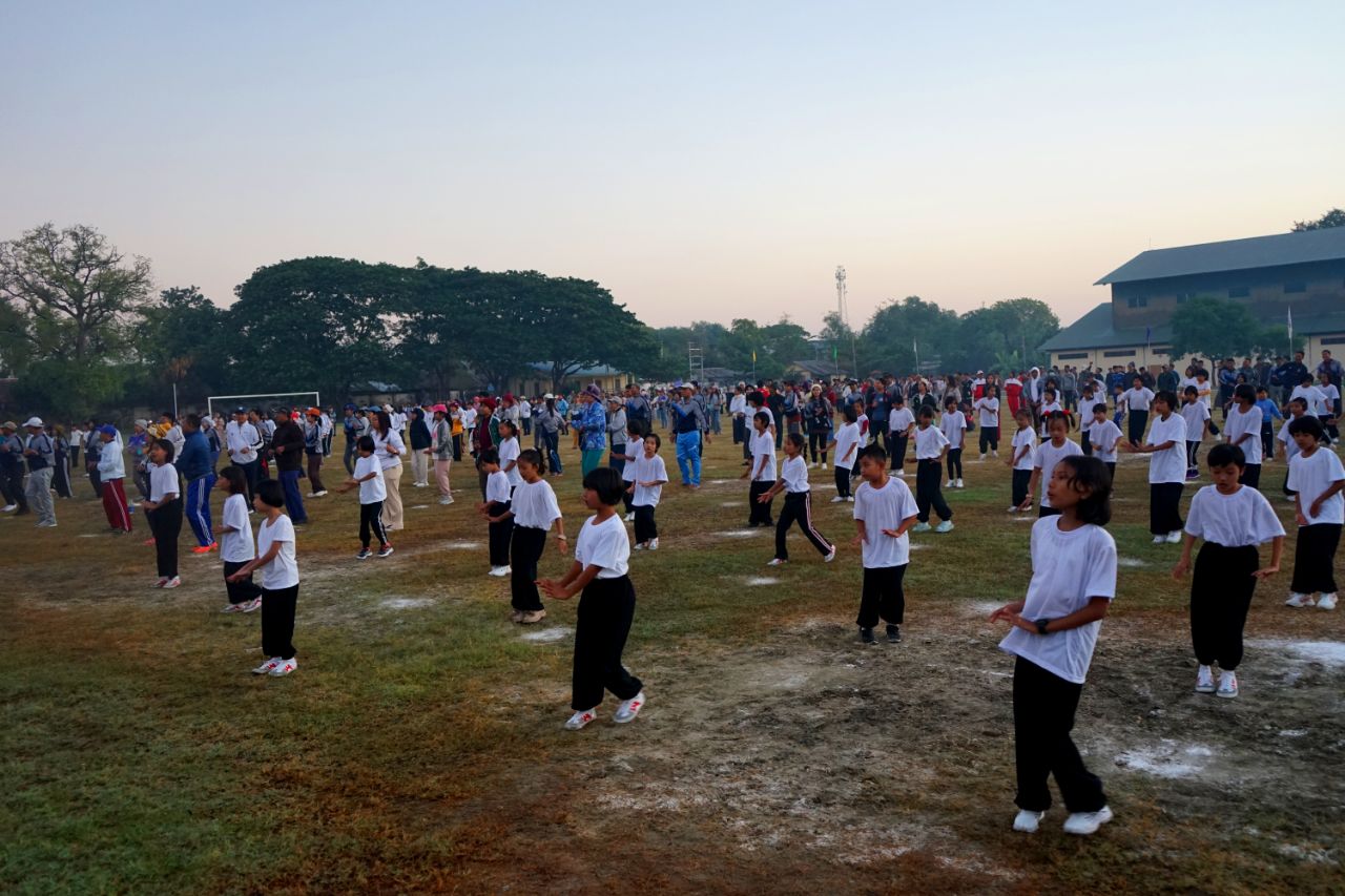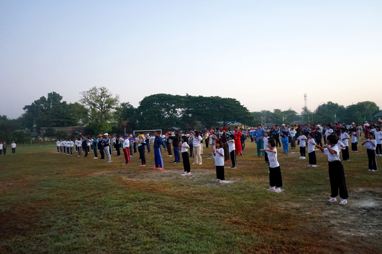 ထို့နောက် ခရိုင်နှင့်မြို့နယ် အားကစားနှင့် ကာယပညာဦးစီးဌာနမှ ကာယနည်းပြများက ဦးဆောင်၍ ခရိုင်အားကစားကွင်းရှိ ဘောလုံးကွင်းအတွင်း၌ ကိုယ်လက်လှုပ်ရှား အားကစားအဖြစ် အကြောလျှော့လေ့ကျင့်ခန်းများနှင့် သွေးပူလေ့ကျင့်ခန်းများကို ပျော်ပျော်ပါးပါး လှုပ်ရှားဆောင်ရွက်ခဲ့ကြပြီးနောက် လူထုအားကစားလှုပ်ရှားမှုတွင် ပါဝင်ဆင်နွှဲကြသူများကို အမှတ်တရလက်ဆောင် ကံစမ်းမဲအဖြစ် စက်ဘီးတစ်စီးနှင့် ထမင်းပေါင်းအိုးတစ်လုံး မဲဖောက်ပေးခဲ့ကြောင်း သိရသည်။