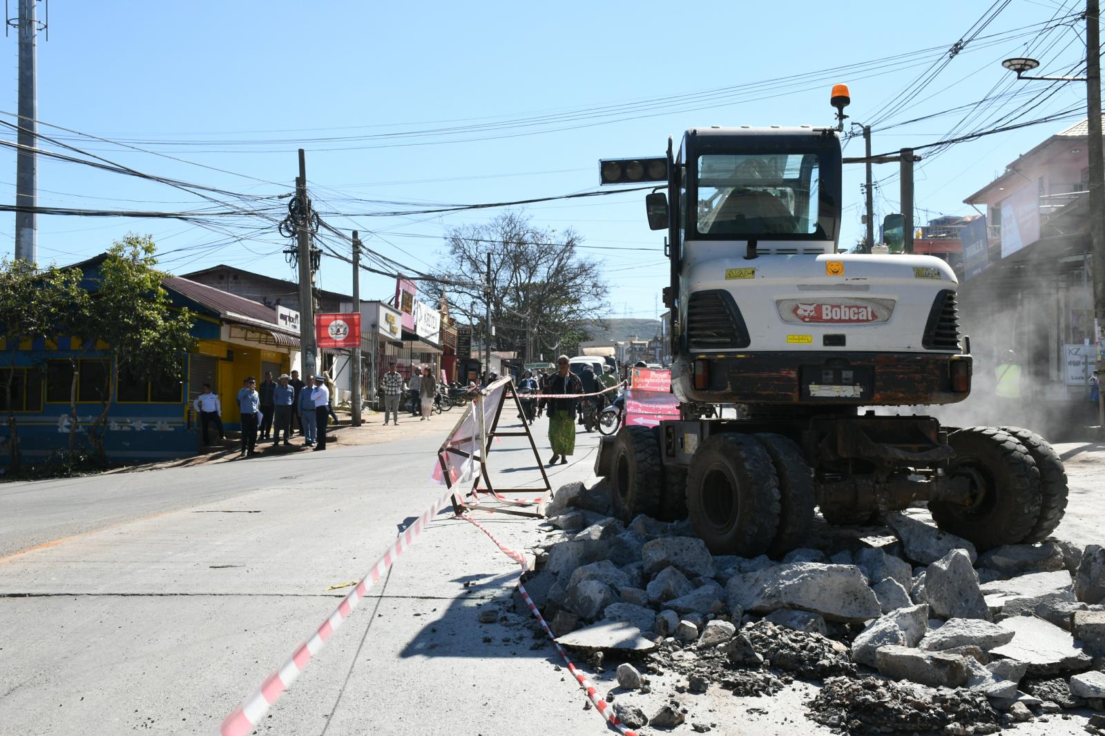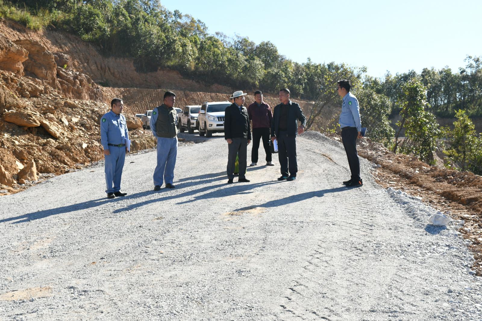 ဆက်လက်၍ ပြည်နယ်ဝန်ကြီးသည်အနောက် မြို့ပတ်လမ်းအဆင့်မြှင့်တင်ခြင်းလုပ်ငန်း (ဝါးပြားလမ်းဆုံ)မှ ကျောက်တစ်လုံးလမ်းဆုံအထိ ကွန်ကရစ်လမ်းခြင်းနှင့်လမ်းပုခုံးပြုလုပ်ခြင်းလုပ်ငန်းများအား သွားရောက်ကြည့်ရှုစစ်ဆေးခဲ့ရာလုပ်ငန်းနှင့်စပ်လျဉ်း၍တာဝန်ရှိသူများက လုပ်ငန်းဆောင်ရွက်နေမှုအခြေအနေများကိုရှင်းလင်းတင်ပြပြီး တင်ပြချက်များအပေါ် ပြည်နယ် လမ်းပန်းဆက်သွယ်ရေးဝန်ကြီးကယာဉ်အန္တရာယ်၊လမ်းအန္တရာယ်ကင်းရှင်းရေး၊ လမ်းဆုံဖြစ်သည့်အတွက် လမ်းပုခုံးများချောမွေးစေရေး၊ သတ်မှတ်စံချိန်စံညွှန်းကိုက်ညီရေး၊လုပ်ငန်းခွင်အန္တရာယ်ကင်းရှင်းရေးစနစ်တကျ ဆောင်ရွက်ရန် မှာကြားခဲ့သည်။