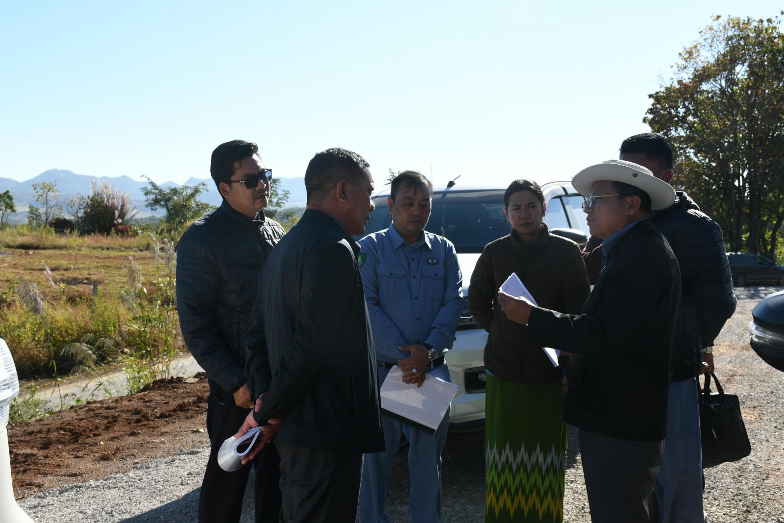 အဆိုပါ တောင်ကြီးမြို့၊ ဖက်ကွန်ကျေးရွာအုပ်စု၊လင်းလေကျေးရွာမြောက်ဘက်အနီးရှိ အမှိုက်စွန့် ပစ်နေရာသစ်နှင့်စပ်လျဉ်း၍ တောင်ကြီးမြို့နယ် စည်ပင်သာယာရေးဌာန၊ အမှုဆောင်အရာရှိ ဦးကျော်မင်းထိုက်၊ မြို့နယ်လမ်းဦးစီးဌာန၊ ဦးစီးအရာရှိ (မြို့ပြ)ဒေါ်ခင်နှင်းနှင့် တာဝန်ရှိသူများက လုပ်ငန်းဆောင်ရွက်နေမှုများအခြေအနေများအား ရှင်းလင်းတင်ပြကတင်ပြချက်အပေါ် ပြည်နယ်လမ်းပန်းဆက်သွယ် ရေးဝန်ကြီးက လမ်းအူကြောင်းသစ်ရွေးချယ်ဖောက်လုပ်ခြင်းလုပ်ငန်း၊ မြေကာနံရံတည်ဆောက်ခြင်းလုပ်ငန်းနှင့် ကျောက်စီရေမြောင်းတည်ဆောက်ခြင်းလုပ်ငန်းများကို သတ်မှတ်ကာလအချိန်မီပြီးစီးရေး၊ လုပ်ငန်းအရည်အသွေးပြည့်မီရေးနှင့် လုပ်ငန်းခွင်အန္တရာယ်ကင်းရှင်းရေးစနစ်တကျ ဆောင်ရွက်သွားရန်မှာကြားခဲ့သည်။