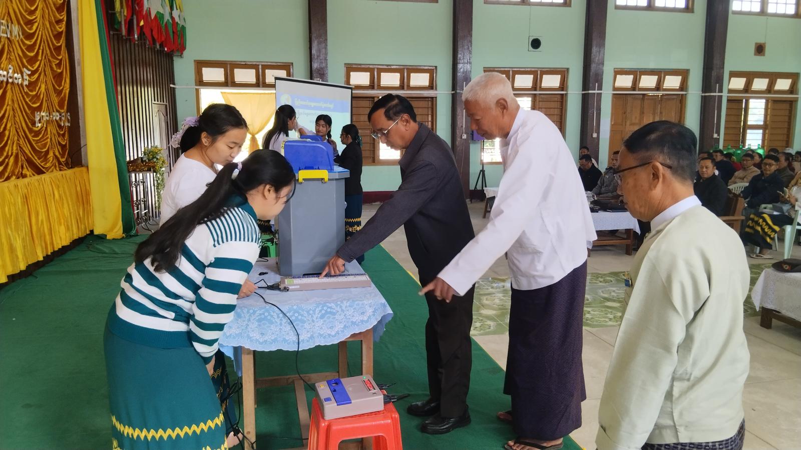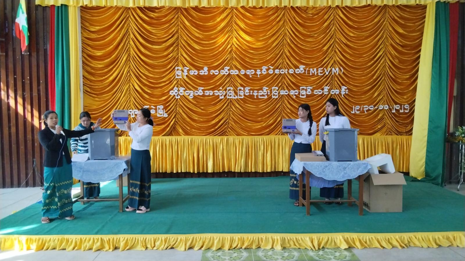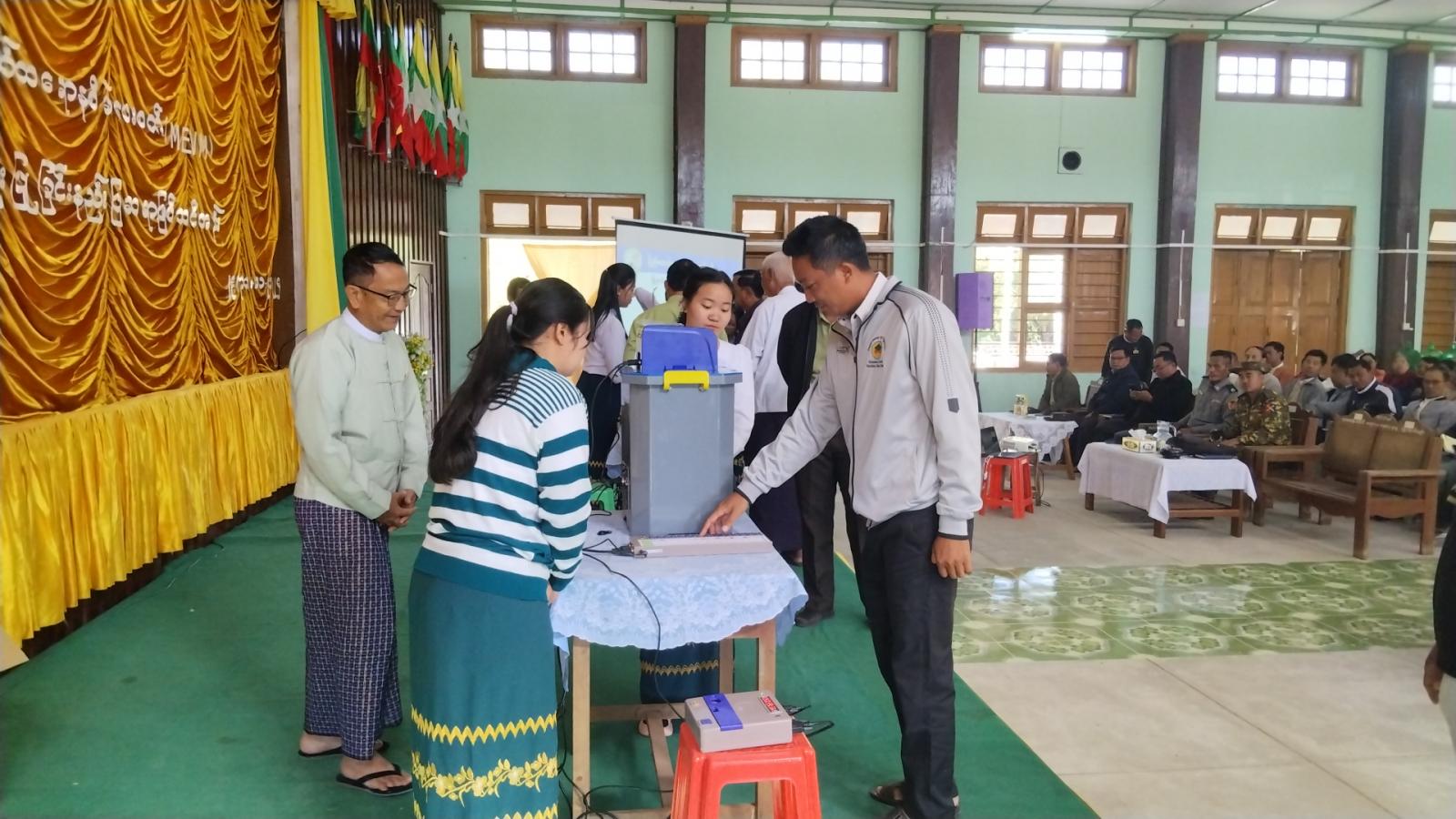 ယင်းနောက်အခမ်းအနားကို တက်ရောက်လာကြသည့် ခရိုင်/မြို့နယ် စီမံအုပ်ချုပ်ရေးအဖွဲ့ဝင်များ၊ ရွေးကောက်ပွဲကော်မရှင်အဖွဲ့အပါအဝင် ခရိုင်/မြို့နယ်အဆင့်ဌာနဆိုင်ရာ အကြီးအကဲများ၊ ပညာရေးဝန်ထမ်းများ၊ နိုင်ငံရေးပါတီအသီးသီးမှ ကိုယ်စားလှယ်များက မြန်မာအီလက်ထရောနစ် မဲပေးစက်အသုံးပြု၍လက်တွေ့မဲပေးခြင်းအားလေ့လာခဲ့ကြသည်။ အဆိုပါ မြန်မာအီလက်ထရောနစ်မဲပေးစက် (MEVM) ကိုင်တွယ်အသုံးပြုနည်းသင်တန်းကို (၂၉-၁၁-၂၀၂၅)ရက်နေ့မှ(၃၀-၁၁-၂၀၂၅) ရက်နေ့အထိ သင်တန်းကာလ (၂) ရက်ဖြင့် နံနက် ၉ နာရီမှညနေ ၁၆ နာရီအထိ သင်တန်းနည်းပြဆရာများမှ အီလက်ထရောနစ်မဲပေးစက် ဖွဲ့စည်းတည်ဆောက်ပုံ၊ အီလက်ထရောနစ် မဲပေးစက်များ စစ်ဆေးခြင်း၊ ရွေးကောက်ပွဲနေ့ မတိုင်မီ မဲရုံတွင် မဲပေးစက်များ ကြိုတင်ပြင်ဆင်ခြင်းနှင့်စမ်းသပ်ခြင်း၊ ရွေးကောက်ပွဲကျင်းပမည့်နေ့တွင် စမ်းသပ်မဲပေးခြင်း၊ မဲပေးချိန်တွင် မဲပေးစက်များ ကိုင်တွယ်ခြင်း၊ အရန်စက်လဲလှယ်ရန် အခြေအနေ၊ မဲရေတွက်ခြင်း၊ မဲပေးနေစဉ်အတွင်း အရေးပေါ်ကိစ္စရပ်များ ဖြစ်ပေါ်လာပါက ဆောင်ရွက်ရမည့်လုပ်ငန်းများ၊ ဆန္ဒမဲဖြတ်ပိုင်းများ ရေတွက်ရမည့်အခြေအနေ စသည့် အကြောင်းအရာများကို စာတွေ့လက်တွေ့ စနစ်တကျ သင်ကြားပို့ချမည်ဖြစ်ပြီး စုစုပေါင်းသင်တန်းသား (၃၀၀)ဦး တက်ရောက် သင်ကြားလျက်ရှိကြောင်း တာဝန်ရှိသူတစ်ဦး၏ ပြောကြားချက်အရ သိရသည်။