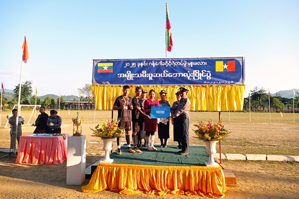 ထို့နောက် ဆုချီးမြှင့်ပွဲအခမ်းအနားကို ဆက်လက်ကျင်းပရာ ဒိုင်လူကြီးများအား ဂုဏ်ပြုလက်ဆောင်များနှင့် ပွဲစဉ်တစ်လျှောက် အကောင်းဆုံးဂိုးသမားဆုရရှိသည့် ယောသူမေအသင်းမှ ဂိုး ရဲဒုတပ်ကြပ် ဝါဝါကြည်သူအား ဂန့်ဂေါခရိုင်လုံခြုံရေးအကူတပ်ခွဲမှူး ရဲမှူး တင်ကိုကိုမှလည်းကောင်း၊ ပွဲစဉ်တစ်လျှောက် အကောင်းဆုံးအားကစားသမားဆုရရှိသည့် သစ္စာအားမာန်အသင်းမှ ကျောနံပါတ် (၆) ရဲတပ်သား ဖူးပွင့်ဝေနှင့် ပွဲစဉ်တစ်လျှောက် ဂိုးသွင်းအများဆုံး အားကစားသမားဆုရရှိသည့် ဇွဲမမအသင်းမှ ကျောနံပါတ် (၁၀) ရဲတပ်သား ငြိမ်းငြိမ်းစိုးအား ဒေါက်တာယဉ်မင်းထွန်းမှလည်းကောင်း၊ အသင်းပါဝင်ယှဉ်ပြိုင်ဆုရရှိသော မဟေသီအသင်းနှင့် ပြည်ချစ်မေအသင်းတို့အား ခရိုင်အားကစားနှင့်ကာယပညာဦးစီးဌာန ဦးစီးမှူး ဦးဌေးမင်းမှလည်းကောင်း ဂုဏ်ပြုဆုငွေများ အသီးသီးပေးအပ်ချီးမြှင့်ကြသည်။