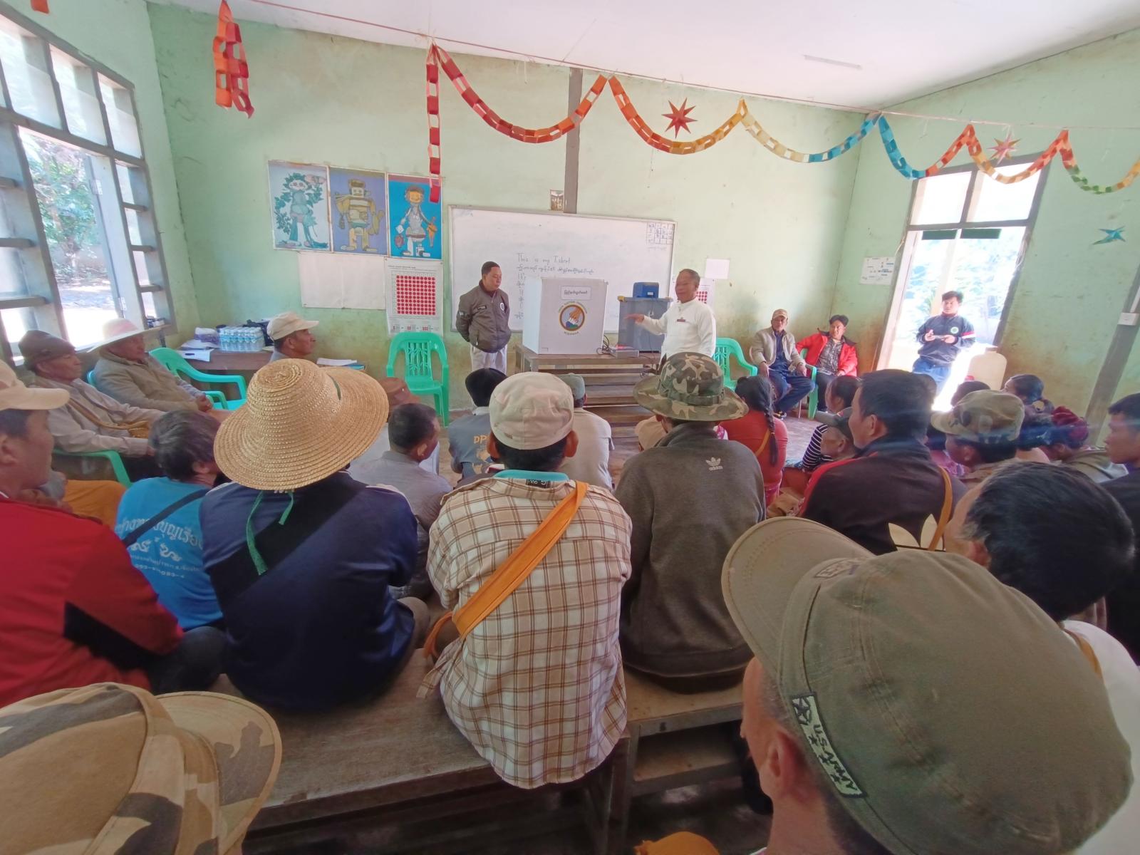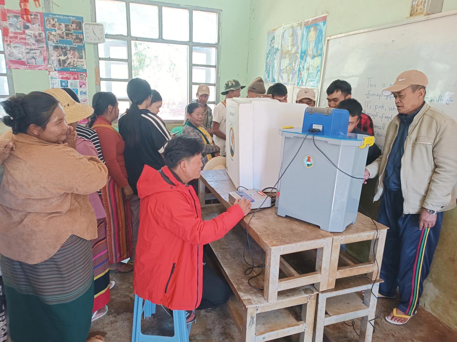 အဆိုပါ မြန်မာအီလက်ထရောနစ်မဲပေးစက်အသုံးပြု၍ လက်တွေ့စမ်းသပ်မဲပေးခြင်းတွင် မြို့နယ်ရွေးကောက်ပွဲကော်မရှင်အဖွဲ့ခွဲဥက္ကဋ္ဌ၊ အတွင်းရေးမှူး ဒေါ်နန်းဝိုခမ်းနှင့်အဖွဲ့ဝင်များက မြန်မာအီလက်ထရောနစ်မဲပေးစက်အကြောင်းနှင့် မဲပေးခြင်းပုံစံအား မြန်မာဘာသာ၊ ရှမ်းဘာသာ(၂)မျိုးဖြင့် အကျယ်တဝံ့ရှင်းလင်းပြောကြားပြီး တက်ရောက်လာသည့် ကျေးရွာနေပြည်သူများက မြန်မာအီလက်ထရောနစ်မဲပေးစက်ဖြင့် လက်တွေ့စမ်းသပ်မဲပေးခြင်းများ ဆောင်ရွက်ခဲ့ကြကြောင်း သိရသည်။