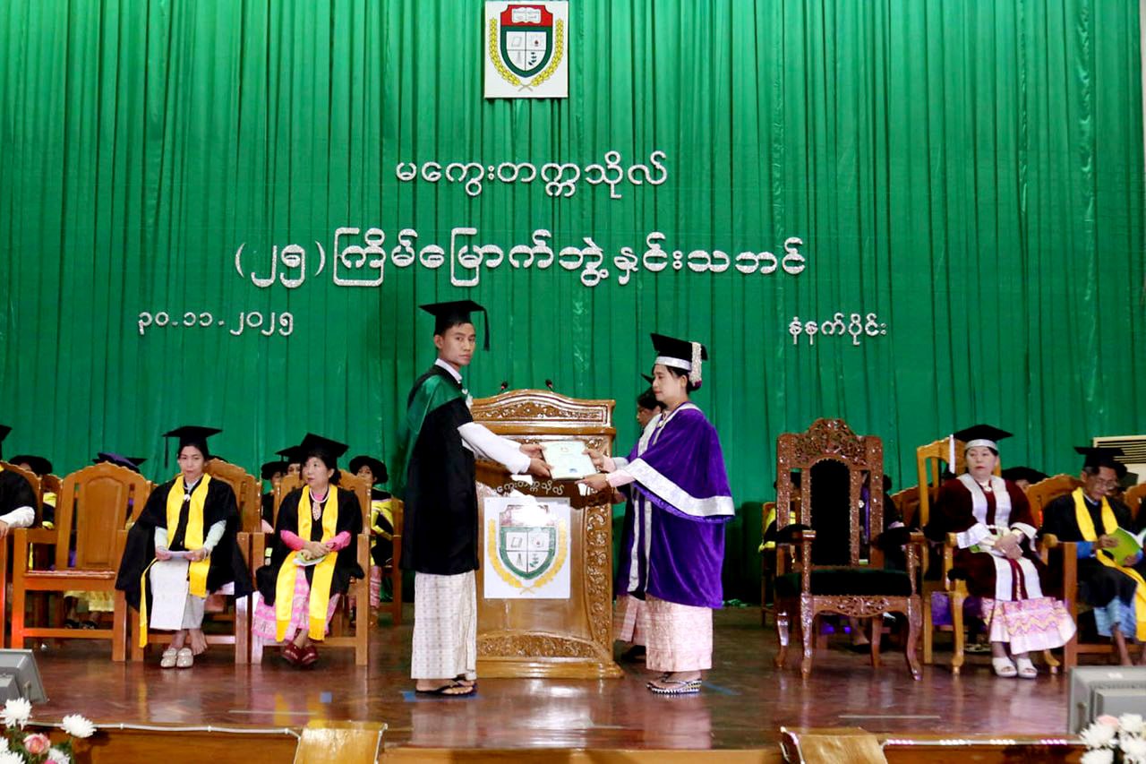 ၂၀၂၃-၂၀၂၄ ပညာသင်နှစ်၊ မကွေးတက္ကသိုလ်(နေ့သင်တန်း)နှင့် ၂၀၂၄ ပညာသင်နှစ် မကွေးတက္ကသိုလ်(အဝေးသင်သင်တန်း)တို့၏ (၂၅)ကြိမ်မြောက် ဘွဲ့နှင်းသဘင်အခမ်းအနားကို ယနေ့နံနက်ပိုင်းမှ စတင်၍ မကွေးတက္ကသိုလ် ဘွဲ့နှင်းသဘင်ခန်းမ၌ ကျင်းပရာ အခမ်းအနားသို့ မကွေးတက္ကသိုလ်ပါမောက္ခချုပ် ဒေါက်တာခင်ကေခိုင်၊ ဒုတိယပါမောက္ခချုပ်များ၊ မကွေးတက္ကသိုလ်စီမံခန့်ခွဲရေးအဖွဲ့ဝင်များ၊ တက္ကသိုလ်ပညာရေးအဖွဲ့ဝင်များ၊ ဘာသာရပ်ဆိုင်ရာပါမောက္ခဌာနမှူးများ၊ ဆရာ၊ ဆရာမများ၊ မိဘဧည့်သည်တော်များ၊ ဘွဲ့ရမောင်မယ်များနှင့် မိဘဆွေမျိုးများ တက်ရောက်ကြသည်။