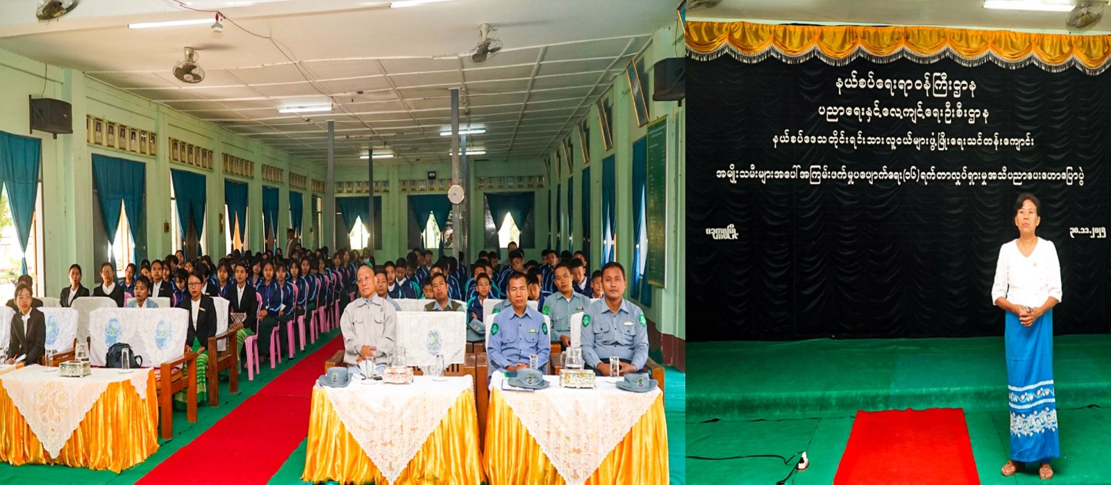 နယ်စပ်ရေးရာဝန်ကြီးဌာန၊ ပညာရေးနှင့်လေ့ကျင့်ရေးဦးစီးဌာန၊ ပခုက္ကူမြို့၊ နယ်စပ်ဒေသတိုင်းရင်းသားလူငယ်များ ဖွံ့ဖြိုးရေးသင်တန်းကျောင်း၌ ယနေ့နံနက် ၉ နာရီအချိန်က အမျိုးသမီးများအပေါ် အကြမ်းဖက်မှုပပျောက်ရေး (၁၆) ရက်တာလှုပ်ရှားမှု အသိပညာပေးဟောပြောပွဲ ကျင်းပပြုလုပ်သည်။