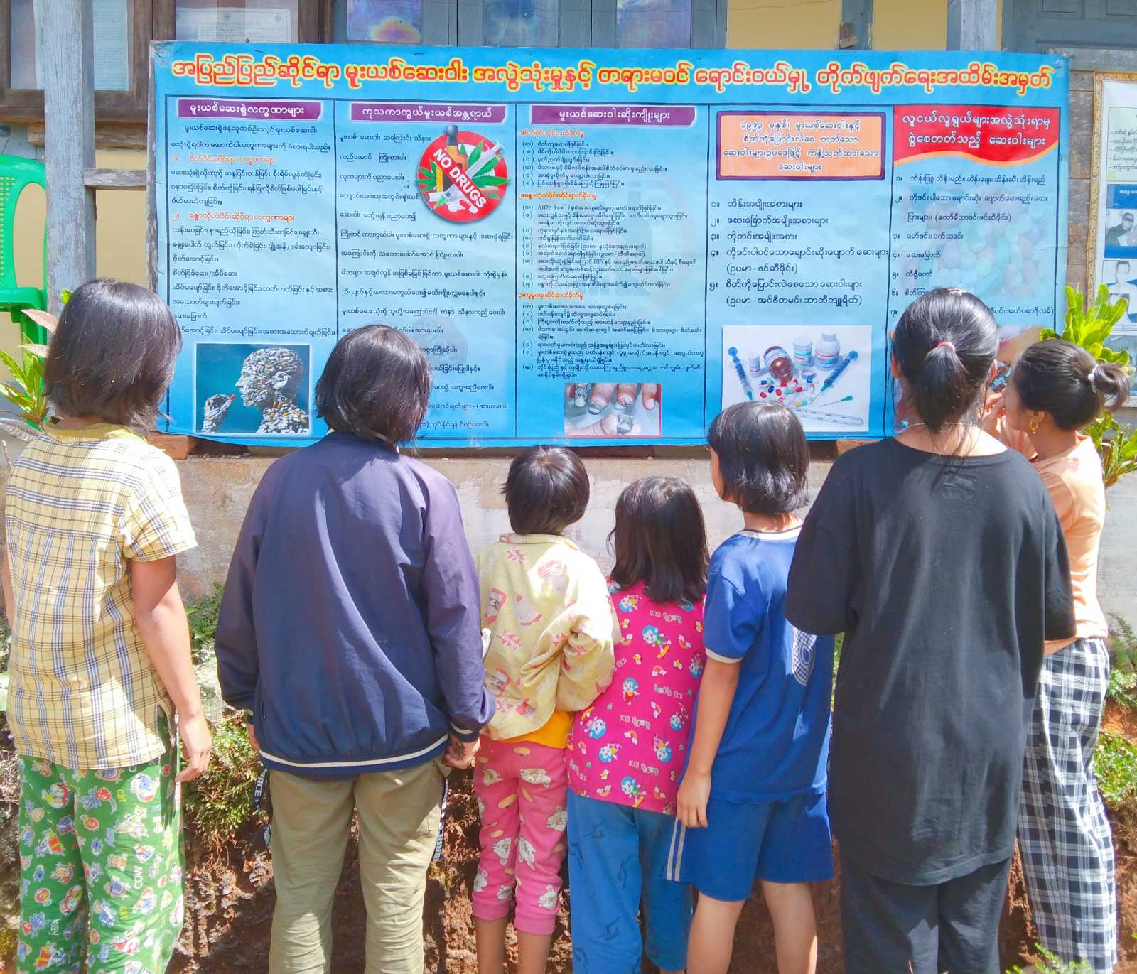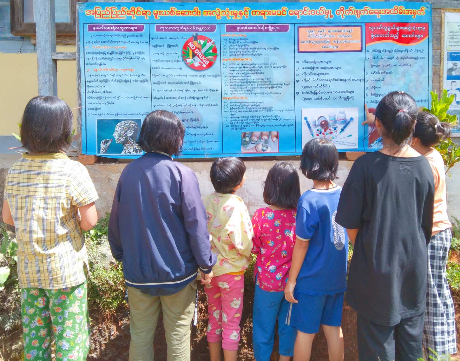 ဒေသနေပြည်သူများနှင့် ကျောင်းသား၊ ကျောင်းသူများ မူးယစ်ဆေးဝါးသုံးစွဲခြင်း၏ ဆိုးကျိုးများကို သိရှိနိုင်စေရန်ရည်ရွယ်၍ ကရင် ပြည်နယ်၊ သံတောင်ကြီးမြို့နယ်၊ လိပ်သိုမြို့ ပြန်ကြားရေးနှင့်ပြည်သူ့ဆက်ဆံရေးဦးစီးဌာနရုံးရှေ့နံရံကပ်ပြဘုတ်၍ မူးယစ်ဆေးဝါးအန္တရာယ်တားဆီးကာကွယ်ရေး အသိပညာပေးနံရံကပ်စာစောင်ကို ဒီဇင်ဘာ ၁ ရက်နေ့ နံနက်ပိုင်းက ပြသဆောင်ရွက်ခဲ့ကြောင်း သိရသည်။