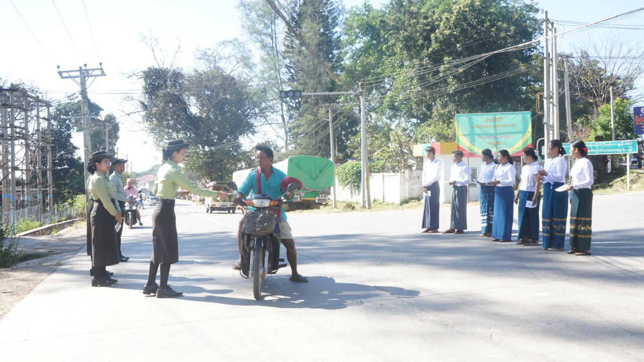 ထိုသို့ဆောင်ရွက်ရာတွင် မြို့နယ်အထွေထွေအုပ်ချုပ်ရေးဦးစီးဌာနမှ ဝန်ထမ်းများ၊ ပြန်ကြားရေး နှင့်ပြည်သူ့ဆက်ဆံရေးဦးစီးဌာန ပအိုဝ်းကိုယ်ပိုင်အုပ်ချုပ်ခွင့်ရဒေသအဆင့်ရုံးမှ ဝန်ထမ်းများ၊ ပအိုဝ်းကိုယ်ပိုင်အုပ်ချုပ်ခွင့်ရဒေသ ရွေးကောက်ပွဲကော်မရှင်အဖွဲ့ခွဲရုံးမှ ဝန်ထမ်းများက ဒို့အတူတူမဲပေးကြမယ် ရွေးကောက်ပွဲမှသည် ပိုမိုကောင်းမွန်သော အနာဂတ်ဆီသို့ အသိပညာပေးလက်ကမ်းစာစောင်များအား ပြည်သူများ ပိုမိုစိတ်ပါဝင်စားစွာ ဆန္ဒမဲပေးနိုင်ရေး ဆောင်ရွက်ခဲ့ကြကြောင်း သိရသည်။