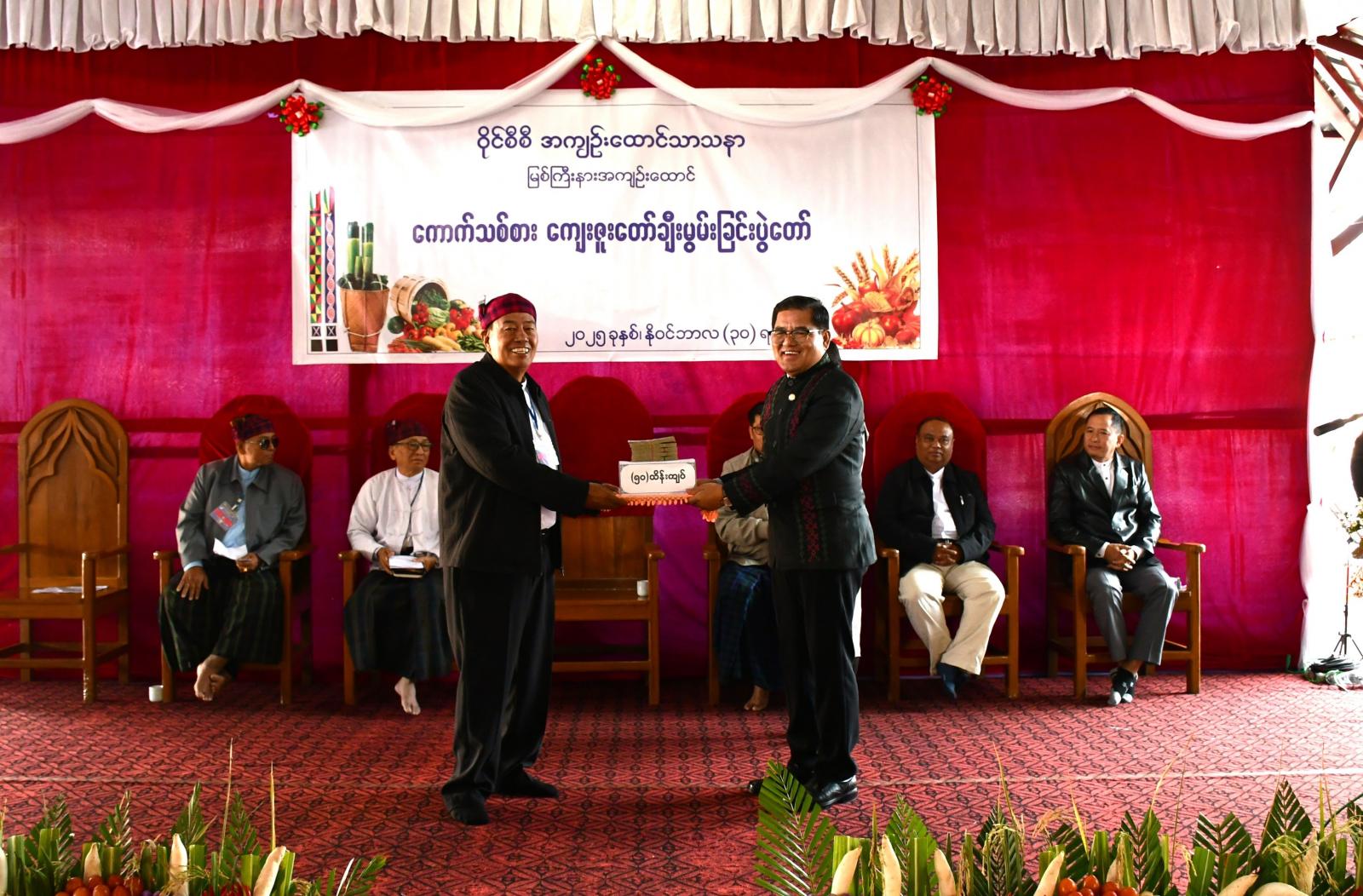 ဆက်လက်၍ ပ ည်နယ်ဝန်ကြီးချုပ်က အကျဉ်းထောင်ရိုးရာကောက်သစ်စားကျေးဇူးတော် ချီးမွမ်းပွဲအတွက် အလှူငွေကျပ်သိန်း ၅၀ ကို ပေးအပ်လှူဒါန်းပြီး ပြည်နယ်ဝန်ကြီးချုပ်နှင့် တာဝန်ရှိသူ များအတွက် အသင်းတော်သိက္ခာတော်ရဆရာက ကျေးဇူးတော်သီးနှံရိုးရာပလိုင်းများကို ဂါဝရပြု ပေးအပ်ကြကာ အကျဉ်းသားတစ်ဦးက ပြည်နယ်ဝန်ကြီးချုပ်အတွက် ပြည်နယ်ဝန်ကြီးချုပ်ပုံတူ ပန်းချီကားကို အမှတ်တရလက်ဆောင်ပေးအပ်ခဲ့သည်။