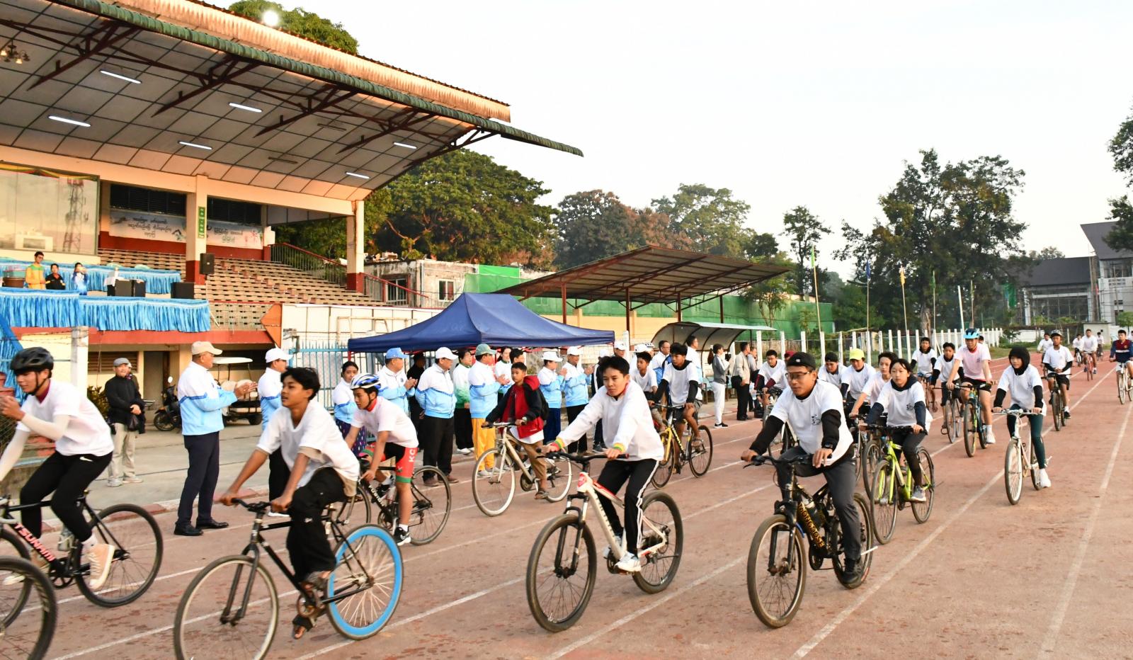 ကချင်ပြည်နယ်၊ မြစ်ကြီးနားမြို့၌ မူးယစ်ကင်းစင် ကချင်ပြည်နယ်တစ်ခွင် အားကစားလှုပ်ရှားမှုအဖြစ် နိုင်ဝင်ဘာ ၃၀ ရက် နံနက်ပိုင်းက လူထုစက်ဘီးစီးနင်းပွဲကို ပြည်နယ်ပြည်သူ့အားကစားကွင်း အထူးတန်းပွဲကြည့်စင်ရှေ့၌ ကျင်းပပြုလုပ်ရာ မြန်မာနိုင်ငံအိုလံပစ်ကော်မတီဥက္ကဋ္ဌ၊ အားကစားနှင့်လူငယ်ရေးရာဝန်ကြီးဌာနနှင့် ဟိုတယ်နှင့်ခရီးသွားလာရေးဝန်ကြီးဌာန၊ ပြည်ထောင်စုဝန်ကြီး Jeng Phang နော်တောင်၊ ပြည်နယ်ဝန်ကြီးချုပ် ဦးခက်ထိန်နန်နှင့် တာဝန်ရှိသူများ တက်ရောက်ခဲ့ကြသည်။