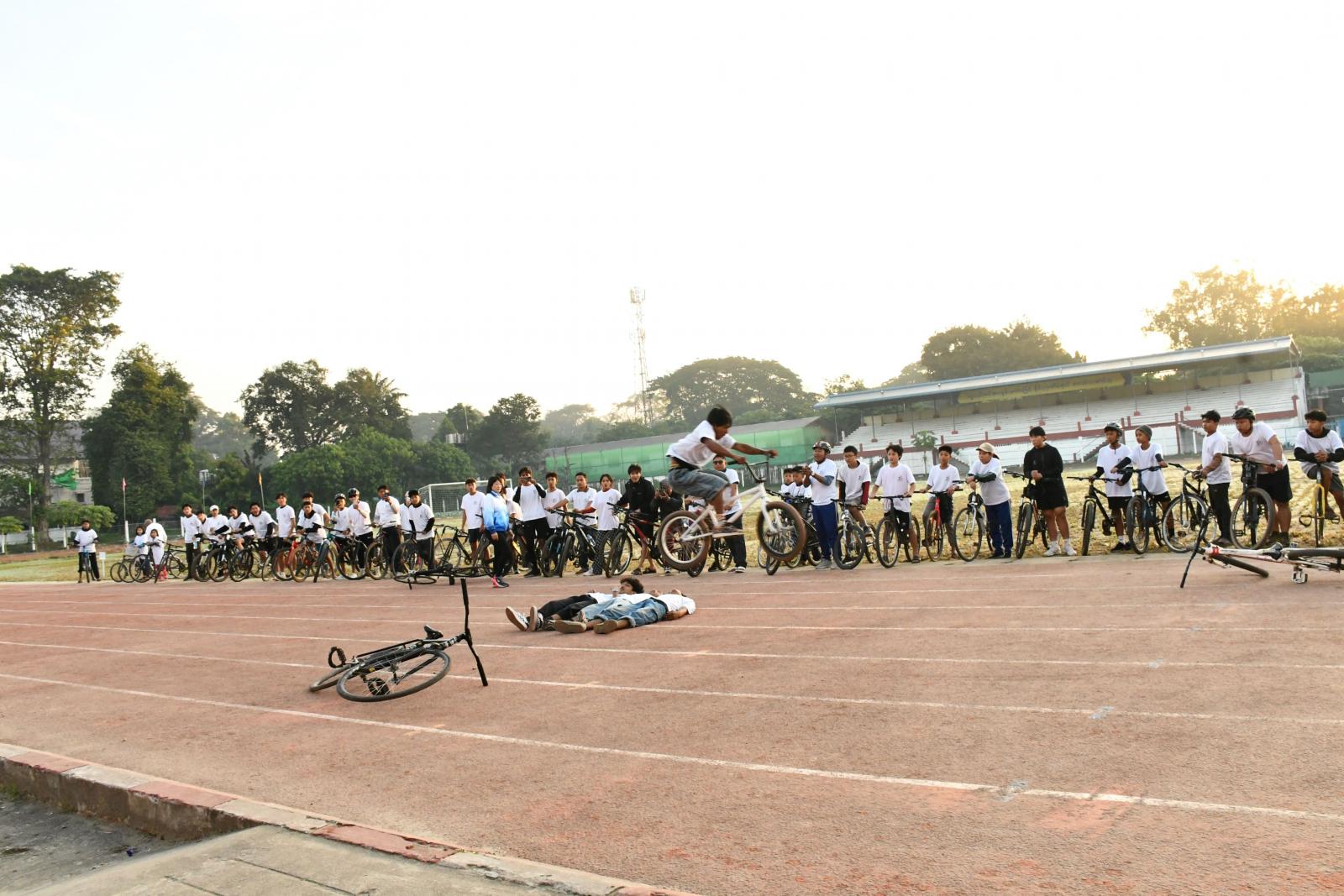 ရှေးဦးစွာ နံနက် ၆ နာရီတွင် ပြည်သူ့အားကစားကွင်း အထူးတန်းပွဲကြည့်စင်ရှေ့စုရပ်၌ လူထုစက်ဘီးနင်းပွဲပါဝင်ဆင်နွှဲကြသူများအား မြန်မာနိုင်ငံအိုလံပစ်ကော်မတီဥက္ကဋ္ဌ၊ ပြည်ထောင်စုဝန်ကြီးက သေနတ်ပစ်ဖောက်၍ တာလွတ်ပေးရာ ပြိုင်ပွဲဝင်များသည် မြစ်ကြီးနားမြို့ သခင်နက်ဖေလမ်းမှတစ်ဆင့် ပြည်ထောင်စုလမ်းမကြီးအတိုင်း အောင်ဇေရန်အောင်ဘုရားထိ၊ ထိုမှတစ်ဆင့် သတ်မှတ်လမ်းကြောင်းအတိုင်း ပြည်သူ့အားကစားကွင်းအထိ တစ်ပျော်တစ်ပါး အသွားအပြန်စီးနင်းခဲ့ကြသည်။