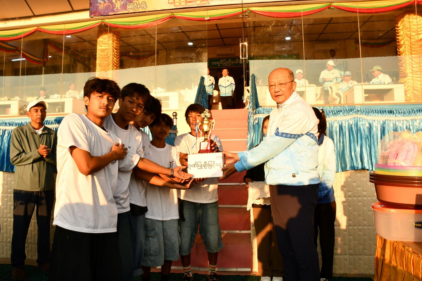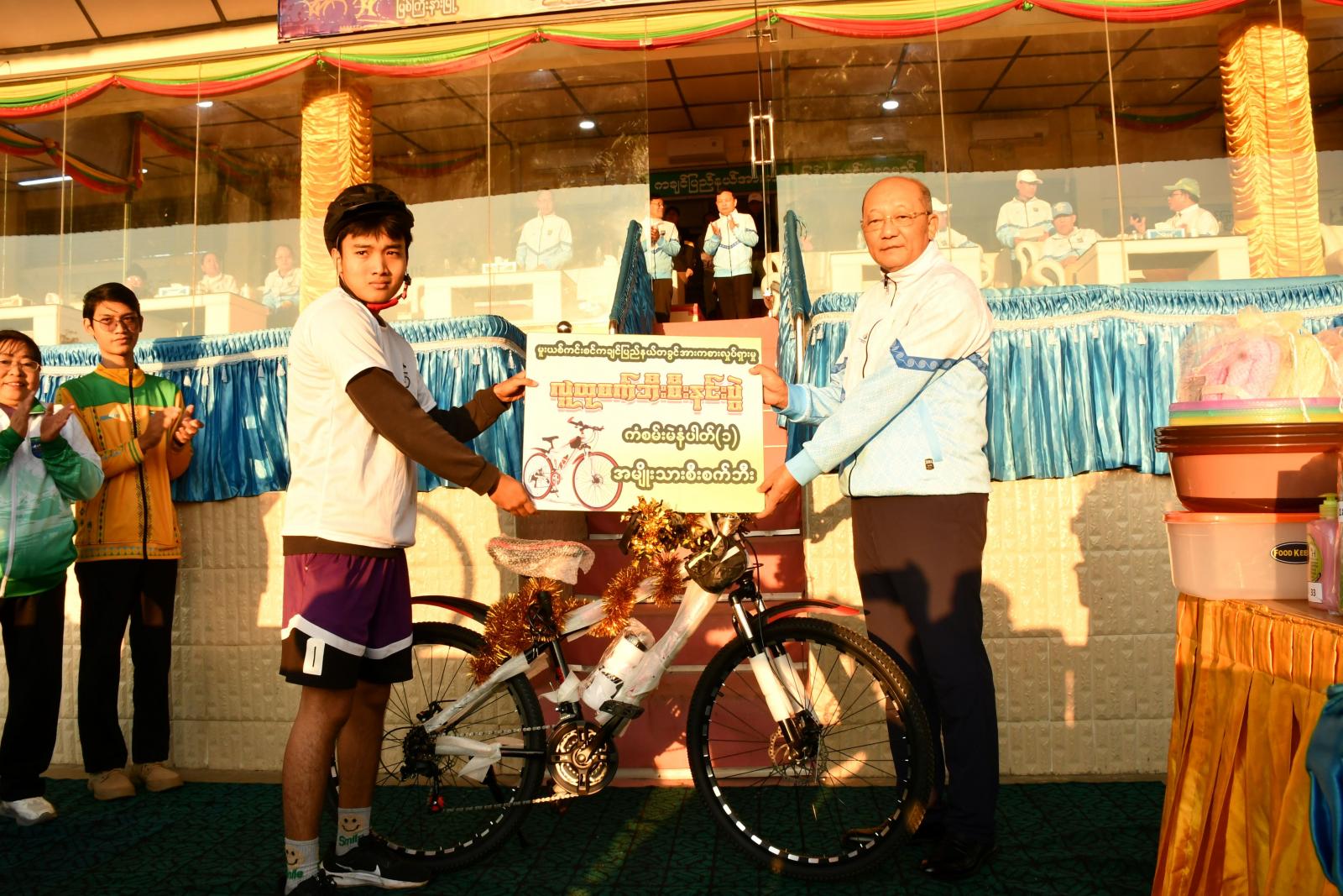 ယင်းနောက် မြစ်ကြီးနားမြို့ရှိ လူငယ်စက်ဘီးစတန့်အဖွဲ့က စက်ဘီးစီးစွမ်းရည်ဖြင့် သရုပ်ပြသမှုကို ကြည့်ရှုအားပေးခဲ့ကြပြီး စက်ဘီးစီးနင်းပွဲပါဝင်ဆင်နွှဲသူများ ကံစမ်းမဲများဖွင့်ဖောက်၍ ဆုများကိုပေးအပ်ချီးမြှင့်ရာ မြန်မာနိုင်ငံအိုလံပစ်ကော်မတီဥက္ကဋ္ဌ၊ ပြည်ထောင်စုဝန်ကြီးက စက်ဘီးစီးစတန့်ပြသည့် လူငယ်အဖွဲ့အတွက် ချီးမြှင့်ငွေများနှင့် အမျိုးသားစီးစက်ဘီးကံစမ်းမဲပေါက်သူတစ်ဦးအား ဆုလက်ဆောင်အဖြစ် စက်ဘီးတစ်စီးကို ပေးအပ်ချီးမြှင့်ခဲ့ကြပြီး ပြည်နယ်ဝန်ကြီးချုပ်က အမျိုးသမီးစီး စက်ဘီးမဲပေါက်သူအား စက်ဘီးတစ်စီးကိုလည်းကောင်း၊ ပြည်နယ်တရားလွှတ်တော်တရားသူကြီးချုပ်နှင့် ပြည်နယ်အစိုးရအဖွဲ့ဝင်များ၊ တာဝန်ရှိသူများက ကျန်စက်ဘီးစီးနင်းပွဲ ပါဝင်ဆင်နွှဲကြသူအားလုံးအား အိမ်သုံးပစ္စည်းများကို ကံစမ်းမဲဖောက်ပေးအပ်ခဲ့ကြကြောင်း သိရသည်။