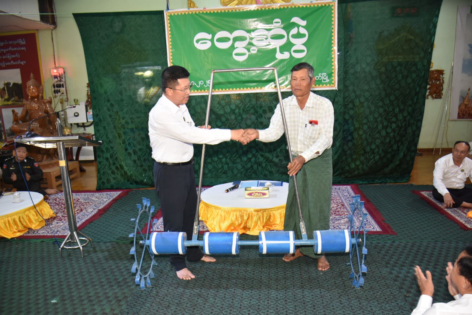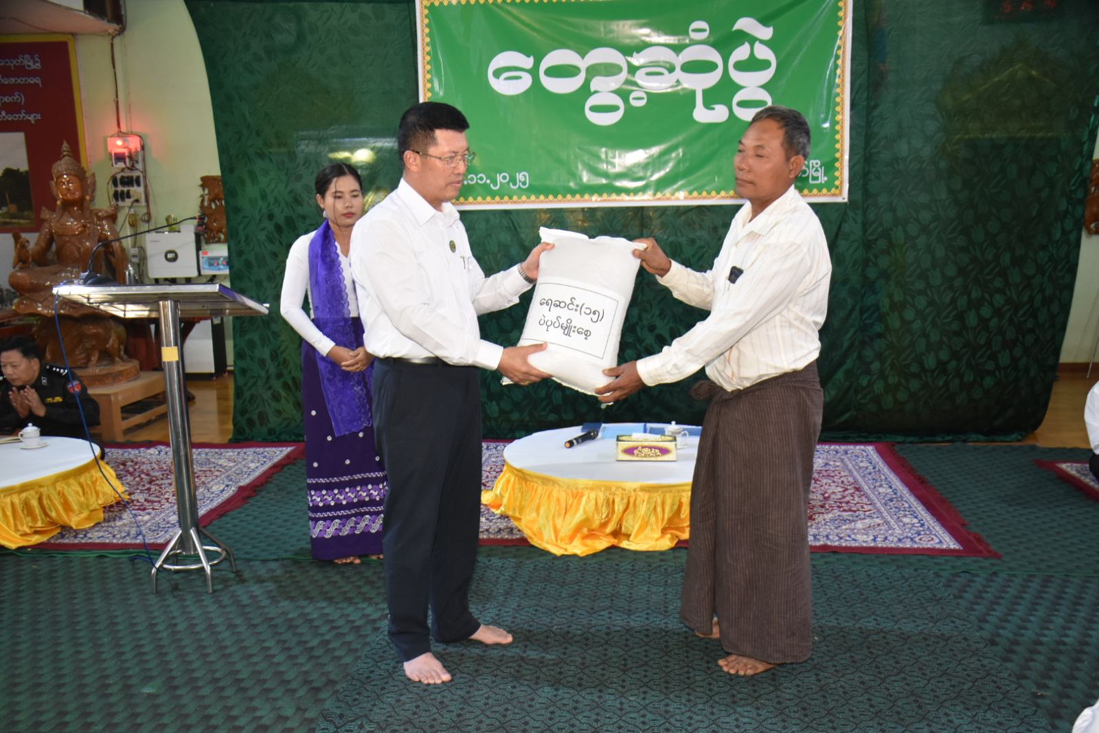 ဧရာဝတီတိုင်းဒေသကြီးဝန်ကြီးချုပ် ဦးတင်မောင်ဝင်းသည် ယမန်နေ့မွန်းလွဲပိုင်းက ရေကြည်မြို့နယ်၊ အသုတ်မြို့ရှိဒေသခံပြည်သူများနှင့်တွေ့ဆုံ၍ ဒေသဖွံ့ဖြိုးရေးကိစ္စရပ်များဆွေးနွေးခဲ့ပြီး တောင်သူများအား မျိုးစေ့ချကိရိယာ (Drum Seeder)၊ ဓာတ်မြေဩဇာ၊ နေကြာမျိုးစေ့၊ ပဲပုပ်မျိုးစေ့၊ မြေပဲမျိုးစေ့များပေးအပ်ခဲ့သည်။