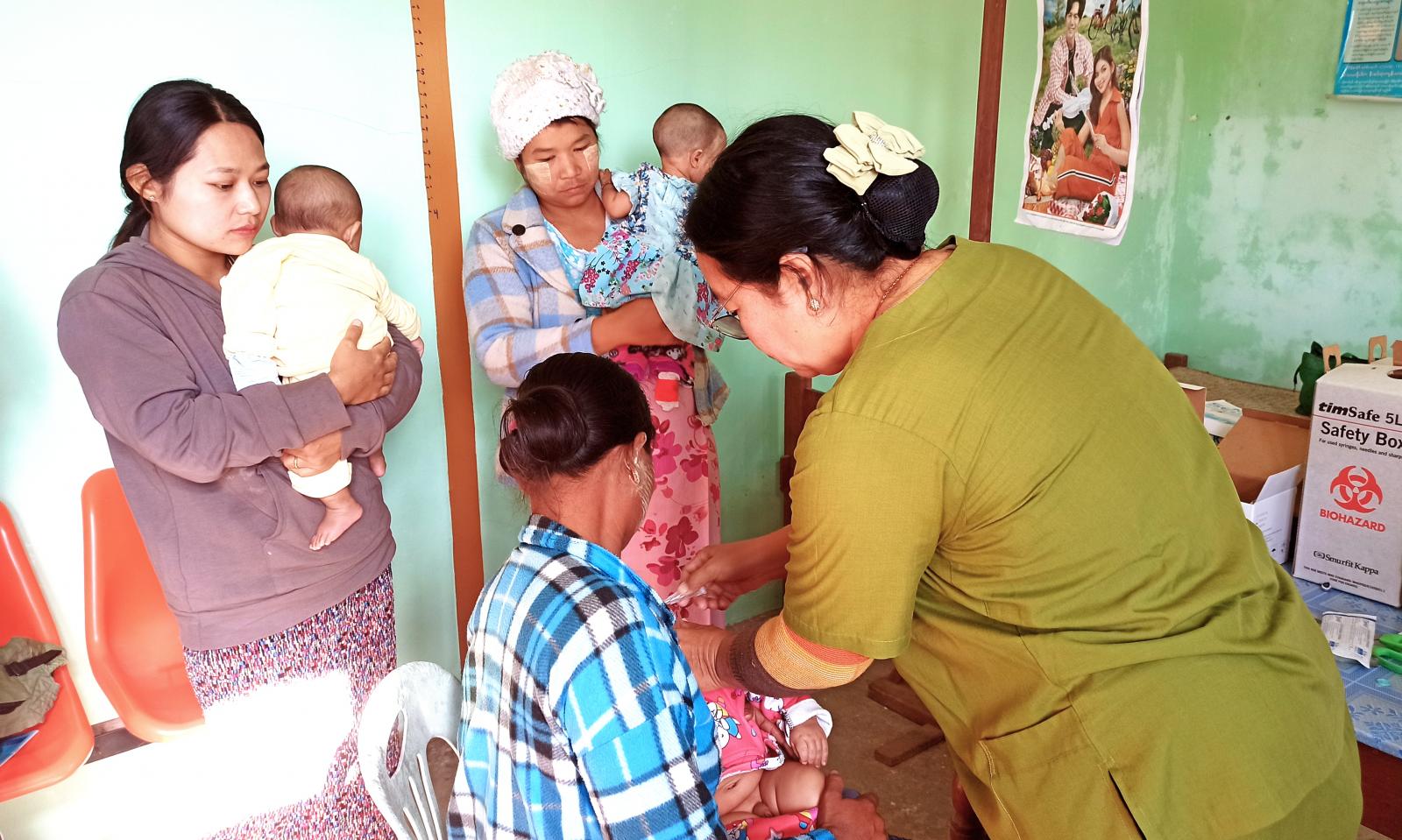 စစ်ကိုင်းတိုင်းဒေသကြီး၊ ကန့်ဘလူခရိုင်၊ ကျွန်းလှမြို့နယ်တွင် ကိုယ်ဝန်ဆောင်မိခင်များ ကျန်းမာရေးကောင်းမွန်ပြီး ကလေးငယ်များ ရောဂါဘယကင်းဝေးစေရန်အတွက် ယနေ့နံနက်ပိုင်းက ပုံမှန်ကာကွယ်ဆေးများ ထိုးနှံတိုက်ကျွေးပေးကြောင်း သိရသည်။