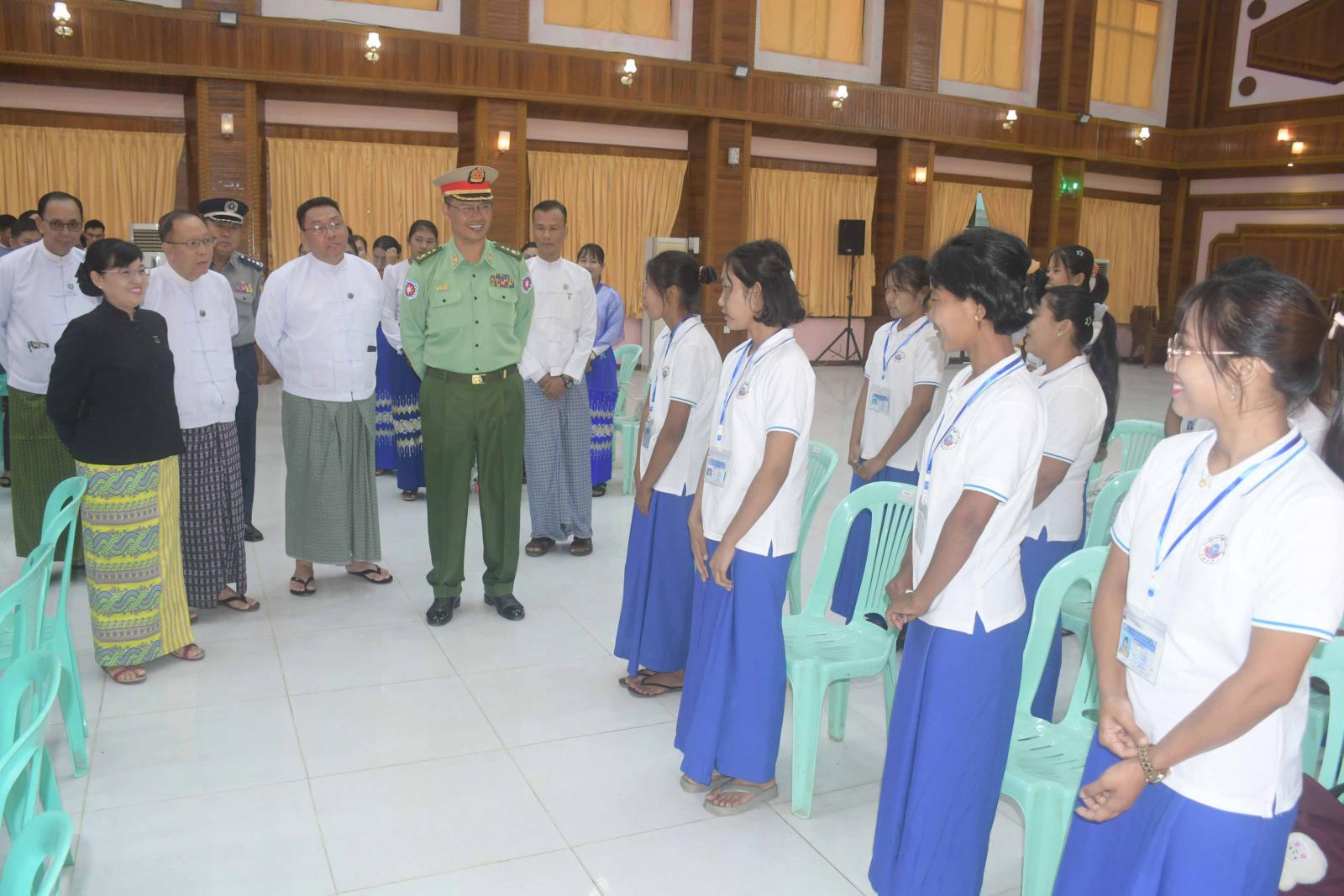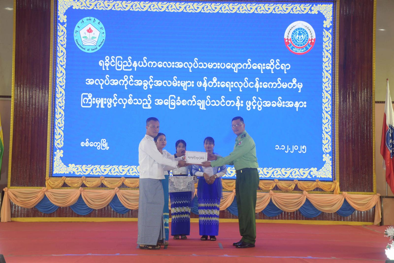ထို့နောက် ပြည်နယ်လုံခြုံရေးနှင့် နယ်စပ်ရေးရာဝန်ကြီး ဗိုလ်မှူးကြီး ကျော်သူရက အခြေခံစက်ချုပ်သင်တန်းအတွက် ချီးမြှင့်ငွေကျပ်သိန်း (၁၅၀) အားပေးအပ်ရာ ရခိုင်ပြည်နယ် ကလေးအလုပ်သမားပပျောက်ရေးဆိုင်ရာ အလုပ်အကိုင်အခွင့်အလမ်းများဖန်တီးပေးရေး လုပ်ငန်းကော်မတီ၊ အတွင်းရေးမှူးနှင့် အိမ်တွင်းမှုသက်မွေးလုပ်ငန်း ပညာသင်ကျောင်းမှ ကျောင်းအုပ်ကြီးတို့က လက်ခံရယူကြသည်။