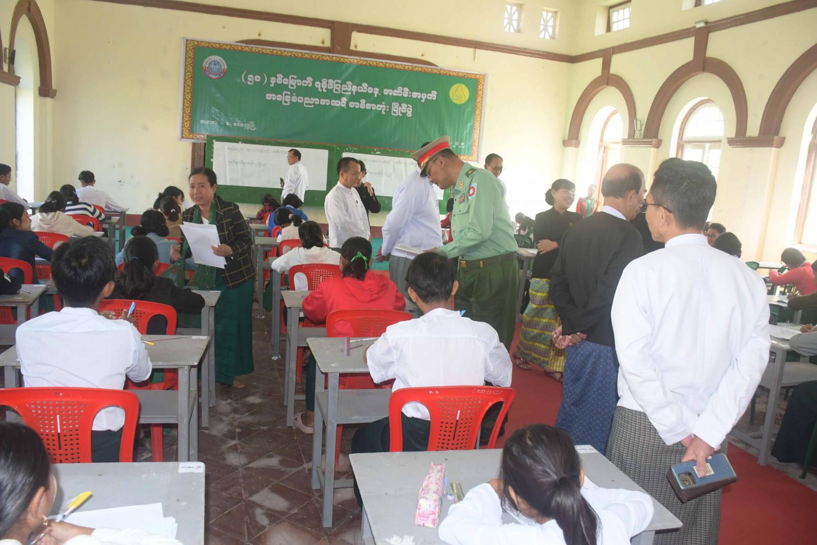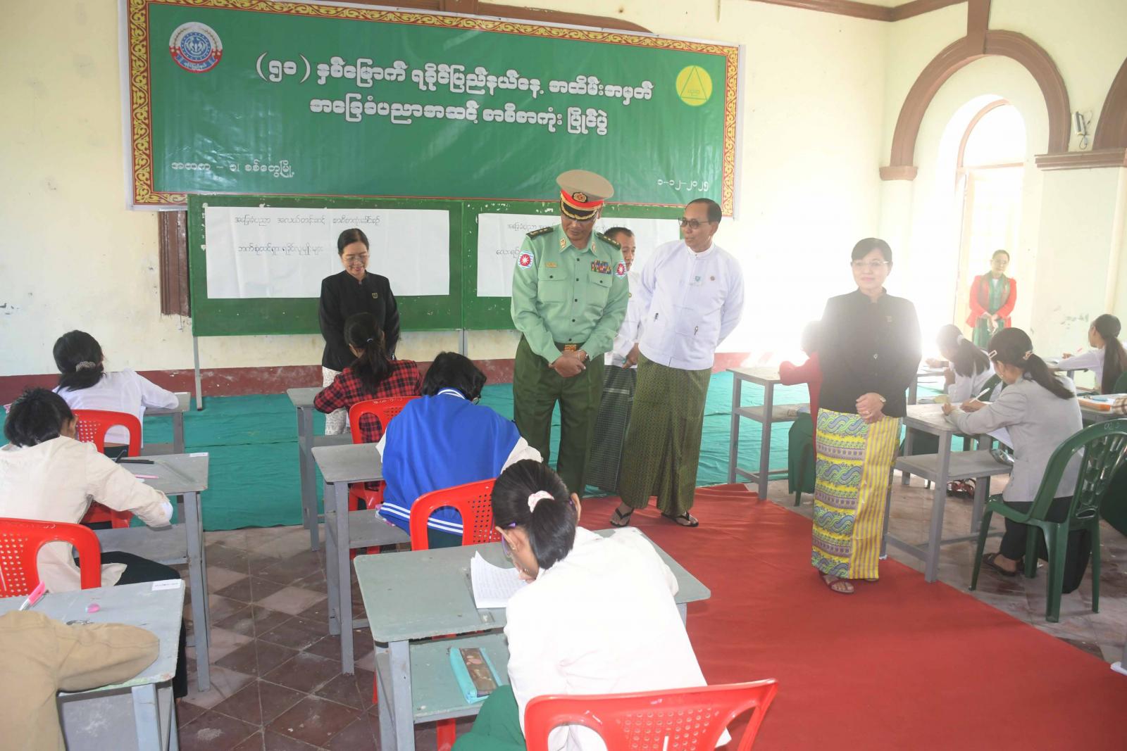 ဆက်လက်ပြီး ပြည်နယ်လုံခြုံရေးနှင့် နယ်စပ်ရေးရာဝန်ကြီးနှင့်အဖွဲ့သည် စစ်တွေမြို့၊ အမှတ် (၁) အခြေခံပညာအထက်တန်း ကျောင်း၌ကျင်းပသော (၅၁) နှစ်မြောက် ရခိုင်ပြည်နယ်နေ့ အထိမ်းအမှတ် စာစီစာကုံးပြိုင်ပွဲတွင် ကျောင်းသား၊ ကျောင်းသူများ ပါဝင်ယှဉ်ပြိုင်နေမှုကို လှည့်လည်ကြည့်ရှုအားပေးကြပြီး လိုအပ်သည်များကို တာဝန်ရှိသူများနှင့်ပေါင်းစပ်ညှိနှိုင်း ပေးခဲ့သည်။