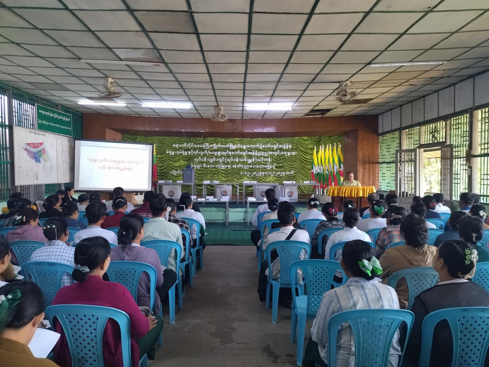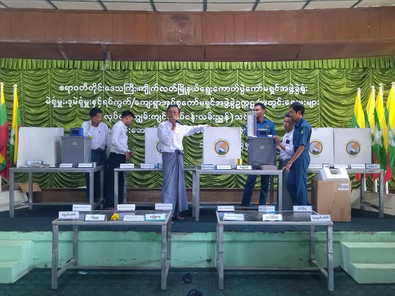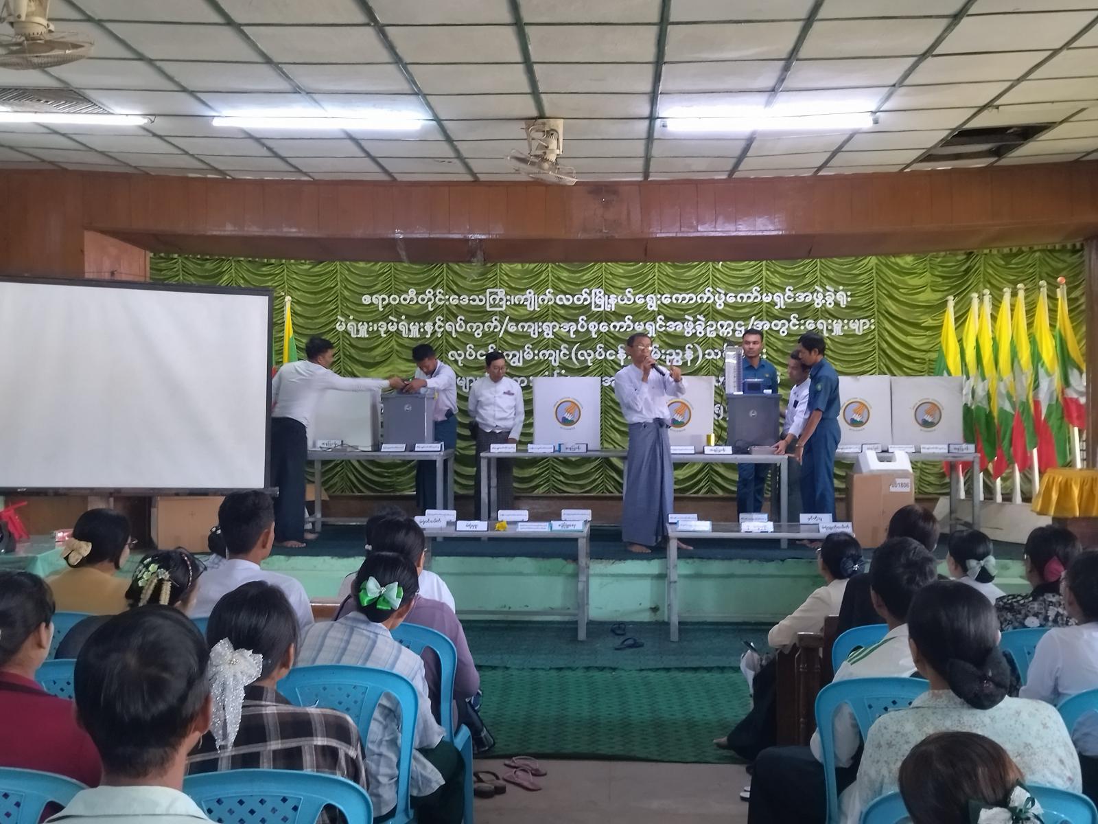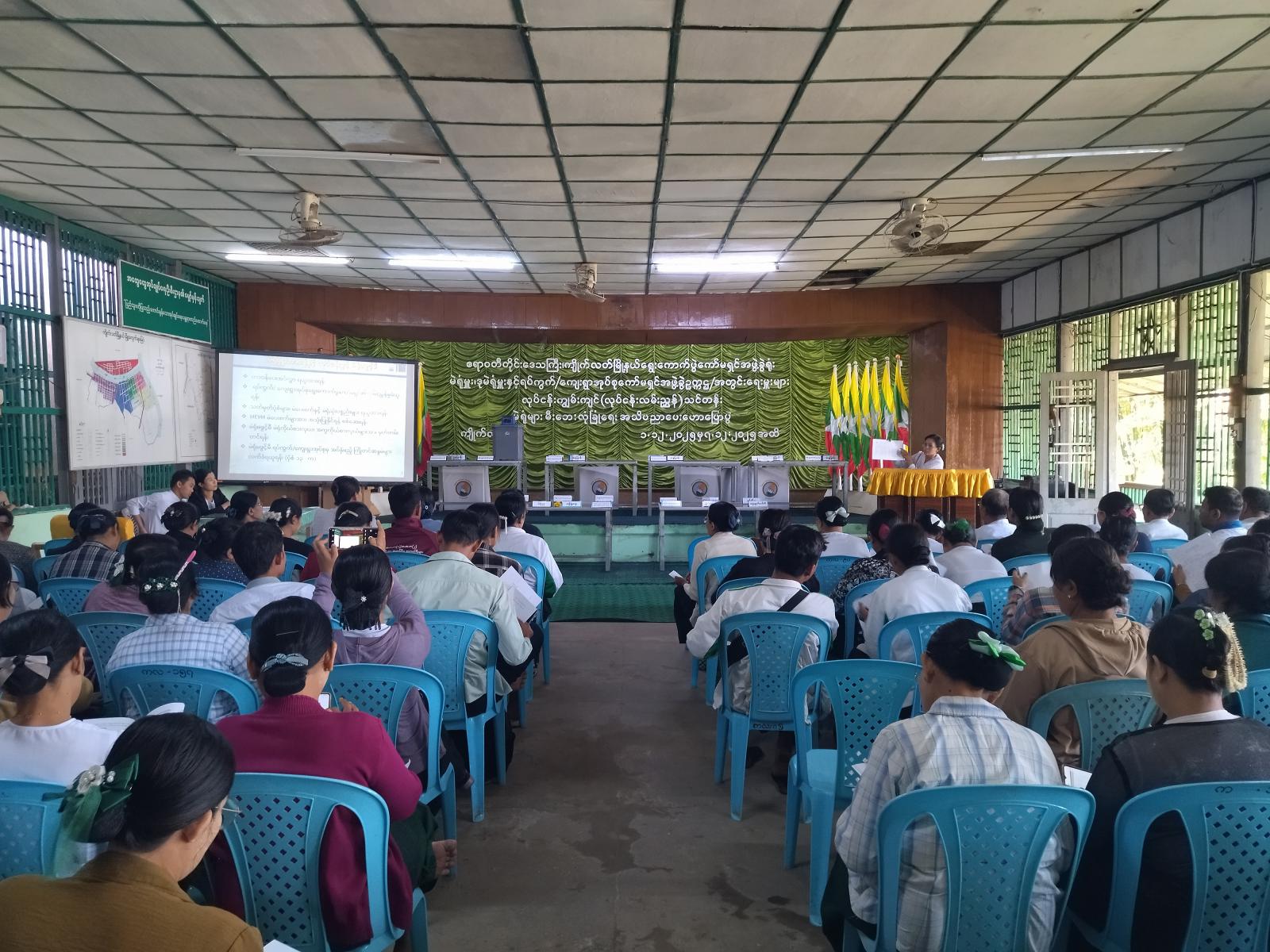 ထို့နောက် မြို့နယ်ရွေးကောက်ပွဲကော်မရှင်အဖွဲ့ခွဲရုံးမှ ဦးစီးအရာရှိ ဒေါ်ခင်မိုးကြည်က မဲရုံမှူး၊ ဒုမဲရုံမှူးနှင့် ရပ်ကွက်/ကျေးရွာအုပ်စုကော်မရှင်အဖွဲ့ခွဲများ၏ တာဝန်နှင့် လုပ်ပိုင်ခွင့်များ၊ ဆောင်ရွက်ရမည့် လုပ်ငန်းအဆင့်ဆင့်များကို Power Point ဖြင့် ရှင်းလင်းပြောကြားခဲ့သည်။ ဆက်လက်၍ တက်ရောက်လာကြသည့် သင်တန်းသား/သူ (၄၁၄) ဦးတို့က မဲပေးပုံ အဆင့်ဆင့်အား လက်တွေ့စမ်းသပ်လေ့လာခဲ့ကြပြီး အဆိုပါသင်တန်းကို (၁-၁၂-၂၀၂၅)ရက်နေ့မှ (၇-၁၂-၂၀၂၅)ရက်နေ့ထိ ၇ ရက်ကြာ စာတွေ့လက်တွေ့ သင်ကြားပို့ချပေးသွားမည်ဖြစ်ကြောင်း သိရသည်။