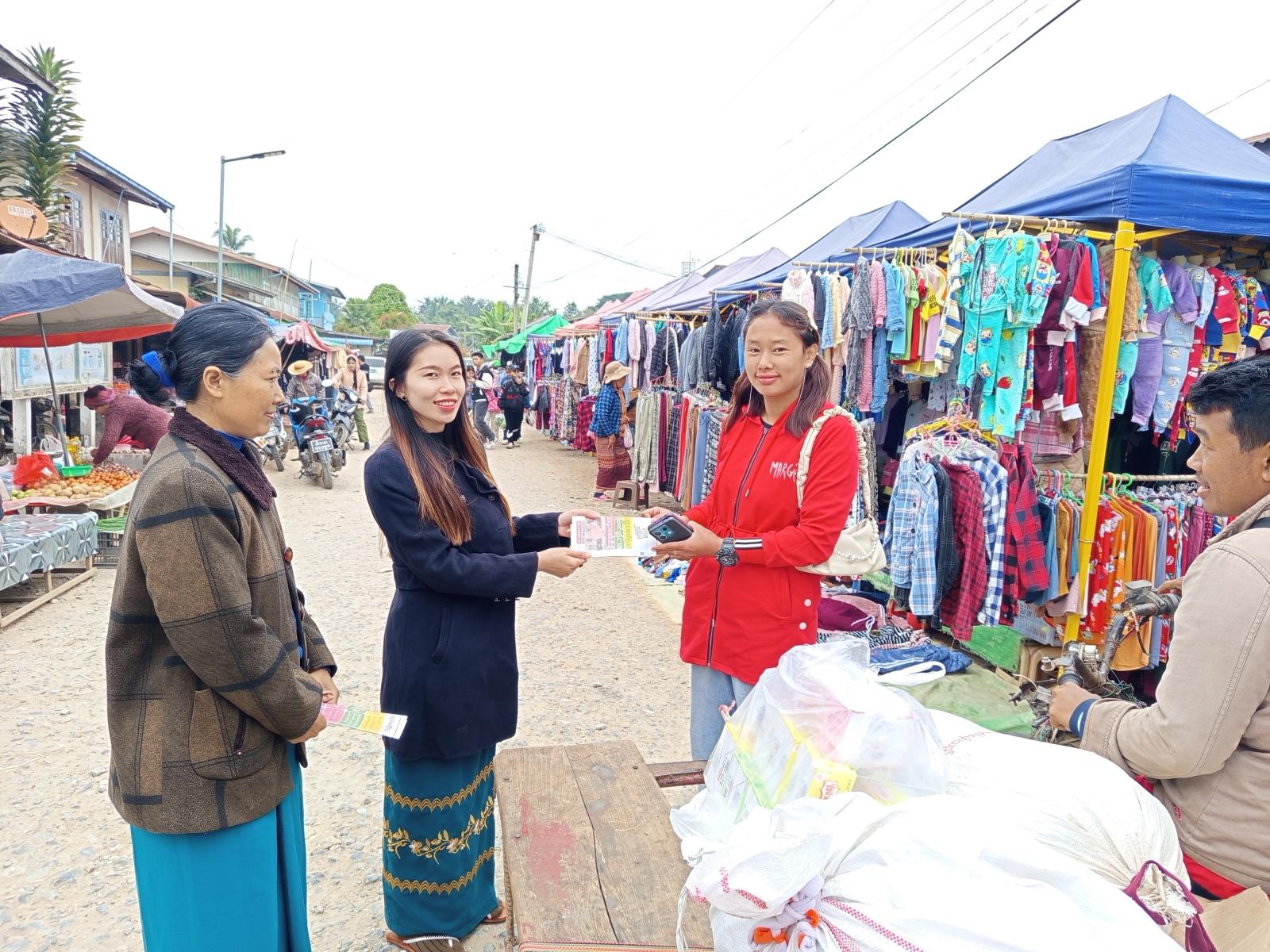 အဆိုပါ ဒို့အတူတူ မဲပေးကြမယ်လက်ကမ်းစာစောင်များ ဖြန့်ဝေခြင်းကို မြို့နယ်အထွေထွေအုပ်ချုပ်ရေးဦးစီးဌာန၊ ဒုတိယမြို့နယ်အုပ်ချုပ်ရေးမှူး ဦးဝေလွင်ဦးနှင့် ဝန်ထမ်းများ၊ မြို့နယ်ရွေးကောက်ပွဲ ကော်မရှင် အဖွဲ့ခွဲမှဝန်ထမ်းများနှင့် ပြန်ကြားရေးနှင့်ပြည်သူ့ဆက်ဆံရေးဦးစီးဌာန၊ ဝန်ထမ်းများတို့မှ ပူးပေါင်း၍ ပြည်သူများ လက်ဝယ်အရောက် ဖြန့်ဝေခဲ့ကြောင်း သိရသည်။