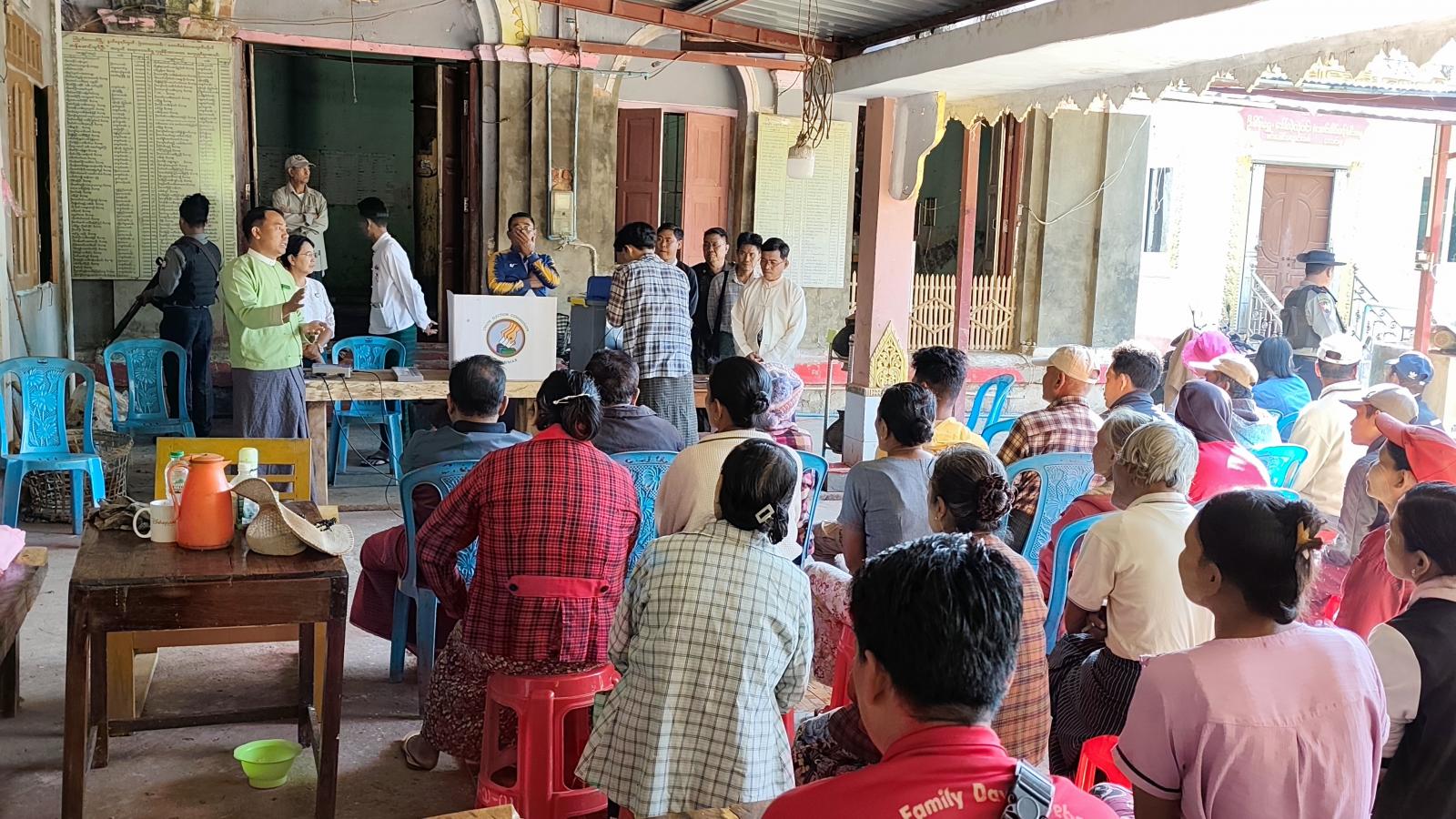 ပြည်သူများ မဲပေးခြင်းလုပ်ငန်းများ အဆင်ပြေချောမွေ့စွာ ပြုလုပ်နိုင်ရေးအတွက် မြန်မာအီလက်ထရောနစ်မဲပေးစက်နှင့်စပ်လျဉ်း၍ အသိပညာပေး ရှင်းလင်းခြင်းနှင့် လက်တွေ့သရုပ်ပြစမ်းသပ်မဲပေးခြင်းကို မြို့နယ်ကော်မရှင်အဖွဲ့ခွဲအဖွဲ့နှင့် ဌာနဆိုင်ရာတာဝန်ရှိသူများက အသိပညာပေးလုပ်ငန်းများ အရှိန်မြှင့် ဆောင်ရွက်လျက်ရှိကြောင်း မြို့နယ်ရွေးကောက်ပွဲကော်မရှင်အဖွဲ့ခွဲရုံးမှ သိရသည်။