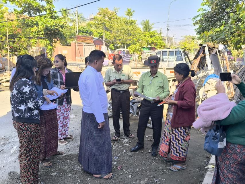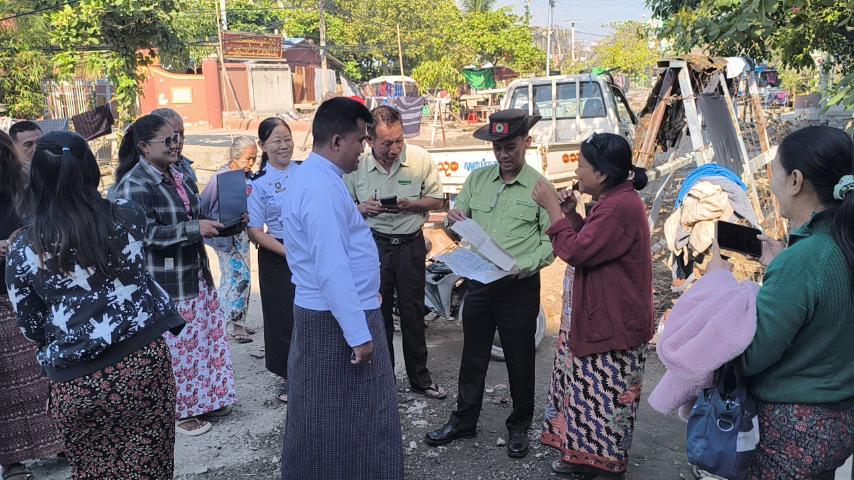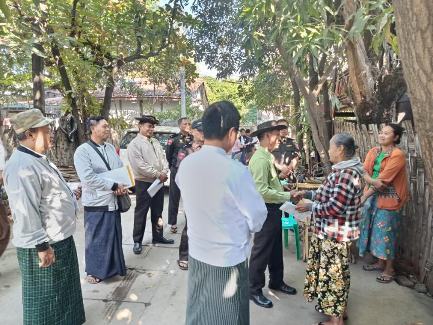 ထိုသို့ ကွင်းဆင်းဆောင်ရွက်ရာသို့ မြို့နယ်စီမံခန့်ခွဲရေးနှင့်အုပ်ချုပ်ရေးကော်မတီဥက္ကဋ္ဌ ဦးမောင်မောင်၊ မြို့နယ်လူဝင်မှုကြီးကြပ်ရေးနှင့်ပြည်သူ့အင်အားဝန်ကြီးဌာန မြို့နယ်ဦးစီးမှူး ဦးကောင်းမြတ်ကျော်နှင့်ဝန်ထမ်းများ၊ မြို့နယ်ရွေးကောက်ပွဲကော်မရှင်အဖွဲ့ခွဲအတွင်းရေးမှူး ဦးရဲမင်းလွင်၊ မြို့နယ်မိခင်နှင့်ကလေးစောင့်ရှောက်မှုအဖွဲ့နှင့် မြို့နယ်အမျိုးသမီးရေးရာအဖွဲ့ဥက္ကဋ္ဌ ဒေါ်ဇင်မာထွန်းနှင့်အဖွဲ့၊ မြို့နယ်ထွေထွေအုပ်ချုပ်ရေးဦးစီးဌာနမှ ဒုတိယမြို့နယ်အုပ်ချုပ်ရေးမှူး ဦးကျော်လင်းခိုင် အထွေထွေအုပ်ချုပ်ရေးဦးစီးဌာနမှ သက်ဆိုင်ရာရပ်ကွက် စာရေးများ၊ သက်ဆိုင်ရာရပ်ကွက်အုပ်ချုပ်ရေးမှူးများ၊ မြို့နယ်ရွေးကောက်ပွဲကော်မရှင်အဖွဲ့ခွဲရုံးမှဝန်ထမ်းများ၊ ရာအိမ်မှူး/ဆယ်အိမ်မှူးများမှ Door to Door မြေပြင်ကွင်းဆင်းကြည့်ရှုစစ်ဆေး၍ လိုအပ်သည်များ ပေါင်းစပ်ဆောင်ရွက်ပေးခဲ့ကြောင်း သိရသည်။