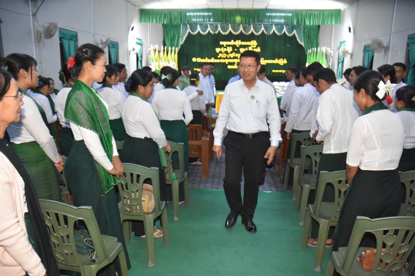 ဧရာဝတီတိုင်းဒေသကြီး၊ ဖျာပုံမြို့၊ အမှတ်(၃) အခြေခံပညာအထက်တန်းကျောင်း မြမဉ္ဇူခန်းမတွင် ၂၀၂၅-၂၀၂၆ပညာသင်နှစ်၊ Grade-12 သင်ဆရာ၊ ဆရာမများ၊ ကျောင်းသားကျောင်းသူများနှင့်တွေ့ဆုံပွဲအခမ်းအနားကို ယမန်နေ့ညနေပိုင်းက ပြုလုပ်ခဲ့ရာ တိုင်းဒေသကြီးဝန်ကြီးချုပ် ဦးတင်မောင်ဝင်းသည် တာဝန်ရှိသူများနှင့်အတူ တက်ရောက်၍ Grade-12 သင် နယ်ဝေးဆရာ၊ ဆရာမများအား ဆန်၊ ဆီနှင့် ချီးမြှင့်ငွေများပေးအပ်ခဲ့သည်။ တာဝန်ရှိသူများနှင့်အတူ တက်ရောက်၍ Grade-12 သင် နယ်ဝေးဆရာ၊ ဆရာမများအား ဆန်၊ ဆီနှင့် ချီးမြှင့်ငွေများ ပေးအပ်ခဲ့သည်။