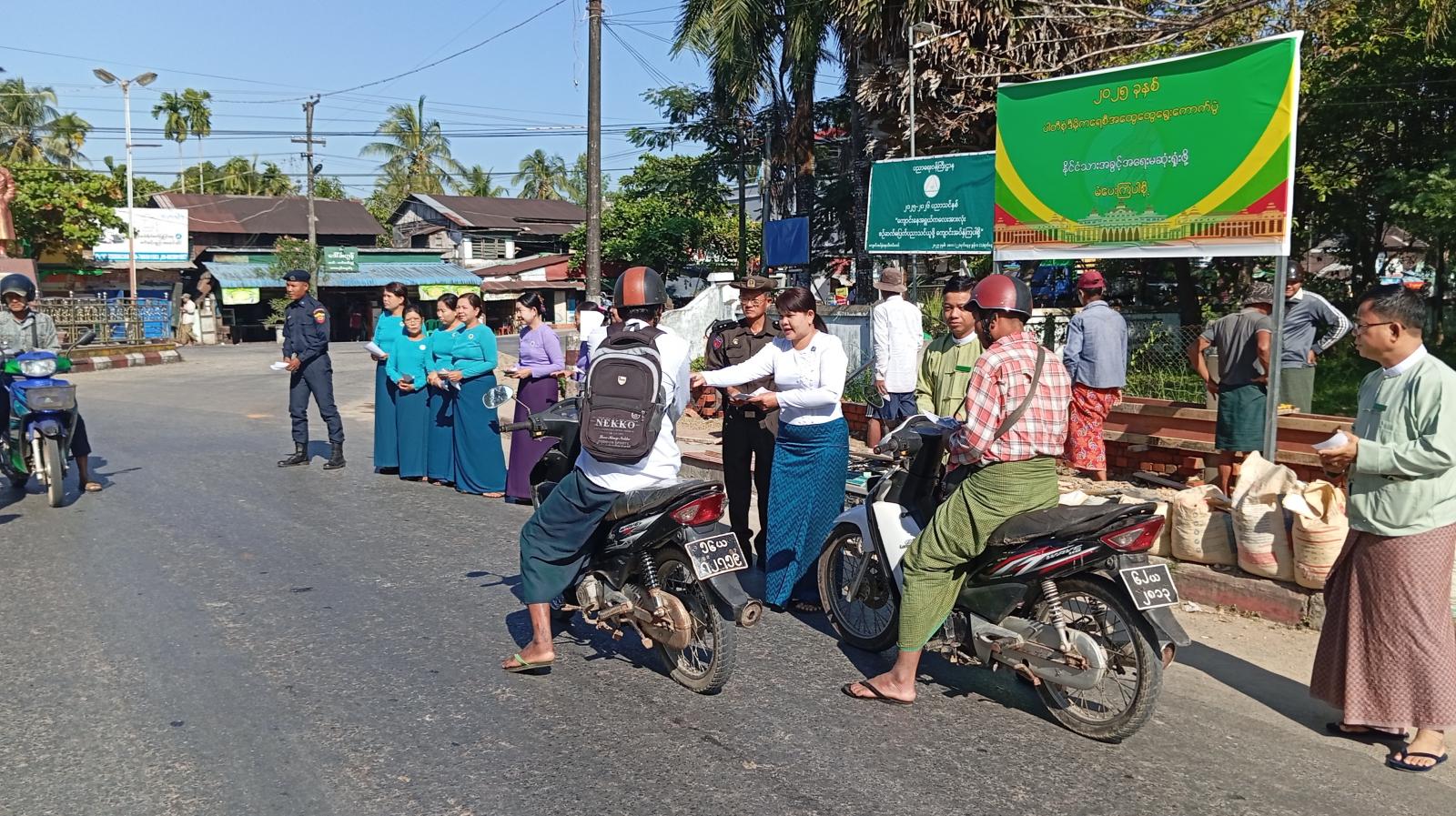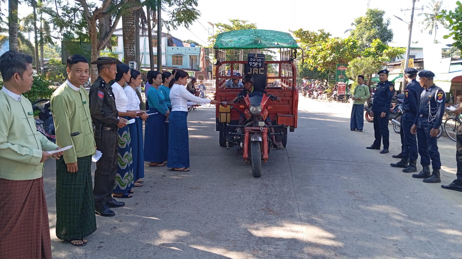အဆိုပါ လက်ကမ်းစာစောင်များ ဖြန့်ဝေခြင်းကို မြို့နယ်စီမံခန့်ခွဲရေးနှင့် အုပ်ချုပ်ရေးကော်မတီ ဥက္ကဋ္ဌ ဦးမြသိန်းမောင်၊ မြို့နယ်ပြန်ကြားရေးနှင့် ပြည်သူ့ဆက်ဆံရေးဦးစီးဌာနမှူး၊ ဒေါ်မြင့်မြင့်ခိုင်နှင့် ဝန်ထမ်းများ၊ ဌာနဆိုင်ရာများနှင့် လူမှုရေးအသင်းအဖွဲ့များက ရွေးကောက်ပွဲ အောင်မြင်ရေး “ဒို့အတူတူ မဲပေးကြမယ်” လှုံ့ဆော်ရေးလက်ကမ်းစာစောင်တွင်ရွေးကောက်ပွဲမှသည် ပိုမိုကောင်းမွန်သော အနာဂတ်ဆီသို့၊ ဒီမိုကရေစီကိုပြန်လည်ဖော်ဆောင်ဖို့အတွက်ရွေးကောက်ပွဲမှလွဲ၍ အခြားနည်းမရှိပါ၊ ပြည်သူများလိုလားသည့် ဒီမိုကရေစီနိုင်ငံတော်ကို ရွေးကောက်ပွဲဖြင့်သာ ဖော်ဆောင်နိုင်ပါသည်၊ ဒီမိုကရေစီခိုင်မြဲဖို့ မဲရုံသွားပြီး မဲပေးကြပါစို့၊ နိုင်ငံတော်ဖွံ့ဖြိုးတိုးတက်ဖို့ ဦးဆောင်နိုင်သူရွေးချယ်ကြပါစို့စသည့် အကြောင်းအရာများ ပါဝင်သည့် အသိပညာပေး လက်ကမ်းစာစောင်များအား အခမဲ့လိုက်လံဖြန့်ဝေပေးခဲ့ကြောင်း သိရသည်။