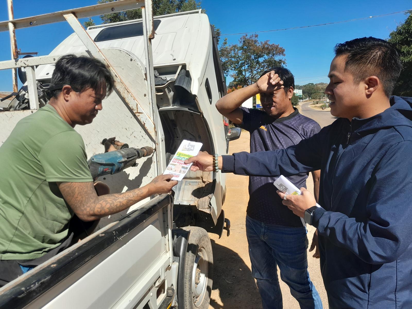 ၂၀၂၅ ခုနှစ်၊ ဒီဇင်ဘာလ (၂၈) ရက်နေ့တွင် ကျင်းပမည့် ပါတီစုံဒီမိုကရေစီ အထွေထွေရွေးကောက်ပွဲတွင် ဆန္ဒမဲမေးပိုင်ခွင့်ရှိသည့် ပြည်သူများအားလုံး မဲပေးနိုင်ရေးအတွက် “ဒို့အတူတူမဲပေးကြမယ်” ရွေးကောက်ပွဲလှုံ့ဆော်ရေး လက်ကမ်းစာစောင်များကို ရှမ်းပြည်နယ်(တောင်ပိုင်း)၊ တောင်ကြီးခရိုင်၊ ကျောက်တလုံးကြီးမြို့တွင် ယနေ့နံနက်ပိုင်းမှစတင်၍ ဖြန့်ဝေလျက်ရှိသည်။