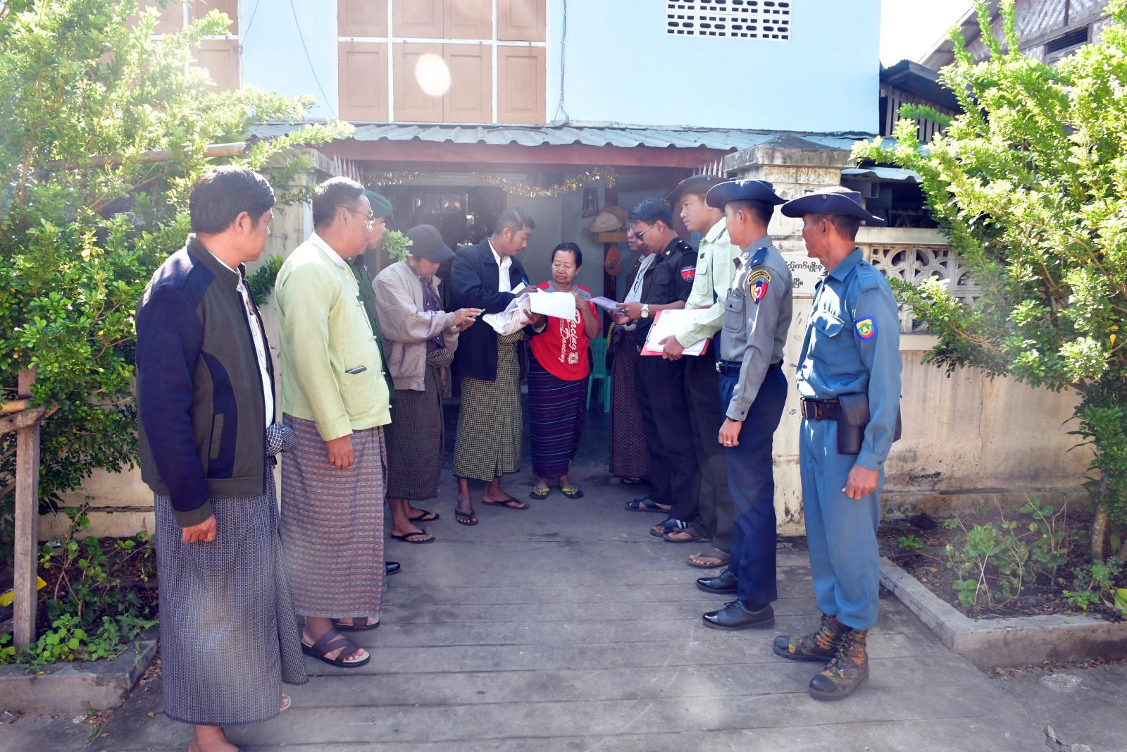 ဦးစွာ နေပြည်တော်ကောင်စီဝင် ဗိုလ်မှူးကြီး ရဲမိုးနှင့် တာဝန်ရှိသူများသည် ပျဉ်းမနားမြို့နယ်၊ မင်္ဂလာရပ်ကွက်အတွင်း တစ်အိမ်တက်ဆင်း Door to Door စနစ်ဖြင့် မဲစာရင်းတိုက်ဆိုင်စစ်ဆေးရေးအဖွဲ့၏ မဲဆန္ဒရှင်စာရင်းများ တိုက်ဆိုင်စစ်ဆေးနေမှုကို ကြည့်ရှုအားပေးပြီး မဲစာရင်းတွင်ပါဝင်သင့်သူများ မကျန်ရှိစေရေး၊ မဲစာရင်းတွင် မပါဝင်သင့်သူများ မပါရှိစေရေးအတွက် စနစ်တကျ စိစစ်ဆောင်ရွက်ကြရန်လိုကြောင်းနှင့် လိုအပ်သည်များကို တာဝန်ရှိသူများအား မှာကြားသည်။