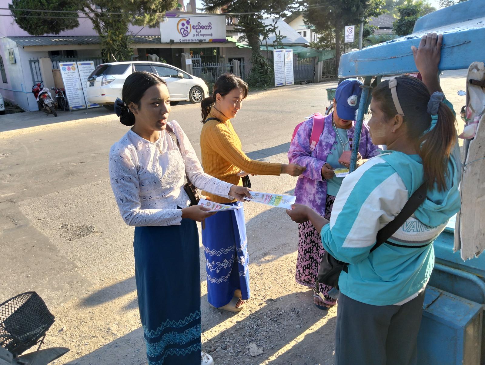 ထိုသို့ဆောင်ရွက်ရာတွင် မြို့နယ်ပြန်ကြားရေးနှင့်ပြည်သူ့ဆက်ဆံရေးဦးစီးဌာနက ဦးစီးအရာရှိ ဒေါ်အေးဝင်းခိုင်နှင့် ဝန်ထမ်းများက ပြည်ထောင်စုလမ်းမကြီးပေါ်တွင် သွားလာနေကြသည့် မိဘပြည်သူများ၊ ဈေးရောင်းဈေးဝယ်များ၊ တက္ကစီဂိတ်များတွင် ဒို့အတူတူမဲပေးကြမယ် လက်ကမ်းစာစောင်များကို ဖြန့်ဝေပေးခြင်းနှင့် အသိပညာပေးလှုံ့ဆော်မှုများကို ဆောင်ရွက်ခဲ့ကြောင်း သိရသည်။ ထို့အတူ အများပြည်သူများအနေဖြင့် ရွေးကောက်ပွဲဆိုင်ရာ အချက်အလက်များကို ပိုမိုသိရှိစေရေးအတွက် မြို့နယ်ပြန်ကြားရေးနှင့်ပြည်သူ့ဆက်ဆံရေးဦးစီးဌာနရုံးရှေ့ရှိ မြေစိုက်ဘုတ်တွင် မြန်မာအီလက်ထရောနစ်မဲပေးစက် (MEVM) ဆိုင်ရာ သိကောင်းစရာများ၊ မဲဆန္ဒရှင်တစ်ဦး၏ တာဝန်နှင့် ရှောင်ရန်အချက်များ၊ အခွင့်အရေးများစသည့် သိကောင်းစရာများပြသ၍ လည်းကောင်း၊ မြို့နယ်ပြည်သူ့ပန်းခြံရှေ့တွင် နိုင်ငံသားအခွင့်အရေး မဆုံးရှုံးဖို့မဲပေးကြပါစို့ ပိုစတာကို စိုက်ထူ၍လည်းကောင်း အသိပညာပေးဆောင်ရွက်လျက်ရှိကြောင်း သိရသည်။
