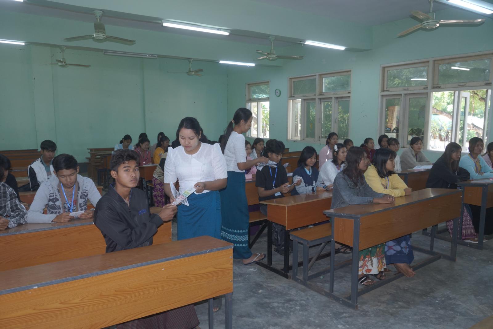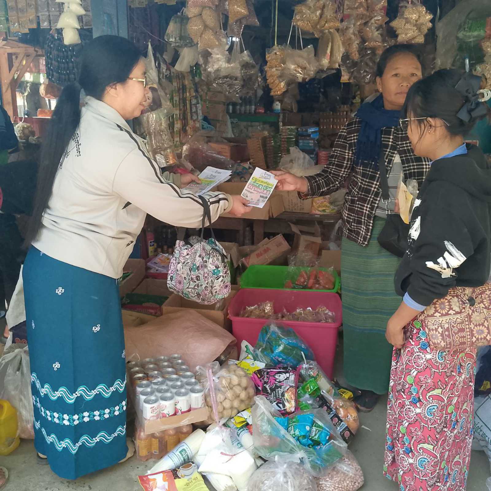 မန္တလေးတိုင်းဒေသကြီး၊ ကျောက်ဆည်ခရိုင်၊ စဉ့်ကိုင်မြို့နယ်၌ ၂၀၂၅ ခုနှစ်၊ ဒီဇင်ဘာ (၂၈) ရက်နေ့တွင် ကျင်းပမည့် ပါတီစုံဒီမိုကရေစီအထွေထွေရွေးကောက်ပွဲတွင် အသက် (၁၈) နှစ်ပြည့်ပြီး ဆန္ဒမဲပေးပိုင်ခွင့်ရှိသူများ နိုင်ငံသားအခွင့်အရေးဆုံးရှုံးမှုမရှိစေရေး ပြည်သူများအားလုံး ပူးပေါင်းပါဝင်၍ လွတ်လပ်စွာ ဆန္ဒမဲပေးနိုင်ရေး ဒို့အတူတူမဲပေးကြမယ် အသိပညာပေးလက်ကမ်းစာစောင်များကို ယနေ့နံနက်ပိုင်းက မြို့မဈေးအတွင်းရှိ ဈေးရောင်း/ ဈေးဝယ်လာသူများ၊ လူစည်ကားရာနေရာ ဒေသခံပြည်သူများနှင့် ကျောက်ဆည်တက္ကသိုလ်ရှိ ဆရာ/ ဆရာမများနှင့် ကျောင်းသား/ ကျောင်းသူများသို့ ဖြန့်ဝေပေးခဲ့ကြသည်။