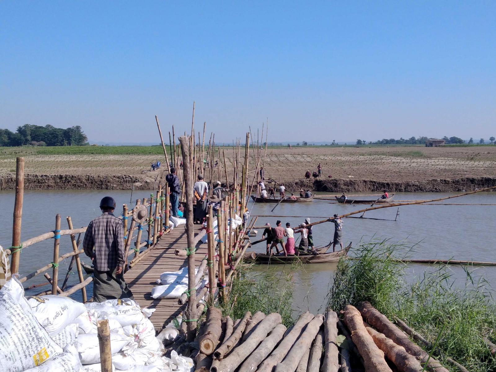 ဧရာဝတီတိုင်းဒေသကြီး၊ မြန်အောင်ခရိုင်၊ ကြံခင်းမြို့နယ်၊ မြို့မရပ်ကွက်၊ တာကြီးတန်း မြို့မပတ်လမ်းကမ်းပါးရှိ နန်းဦးချောင်းကျော်တံတားဆောင်ရွက်နေခြင်းကို ယမန်နေ့နံနက်ပိုင်းကစ၍ ထားဝယ်ကြီးကျောင်းတိုက်ဆရာတော်ဦးဆောင်၍ ရပ်ကွက်နှင့်ကျေးရွာနေပြည်သူများ ပူးပေါင်းကာဧရာဝတီမြစ်ရိုးချောင်းကူးတံတား စတင်တည်ဆောက်လျက်ရှိသည်။