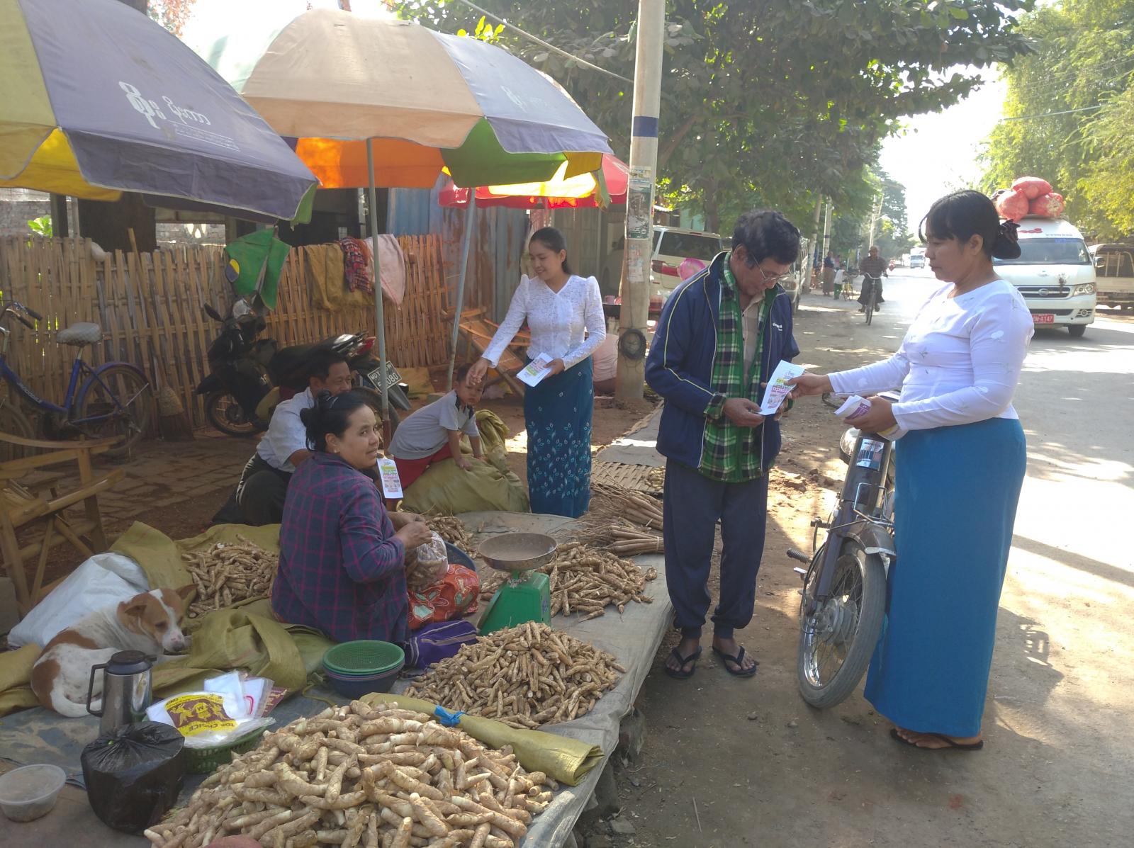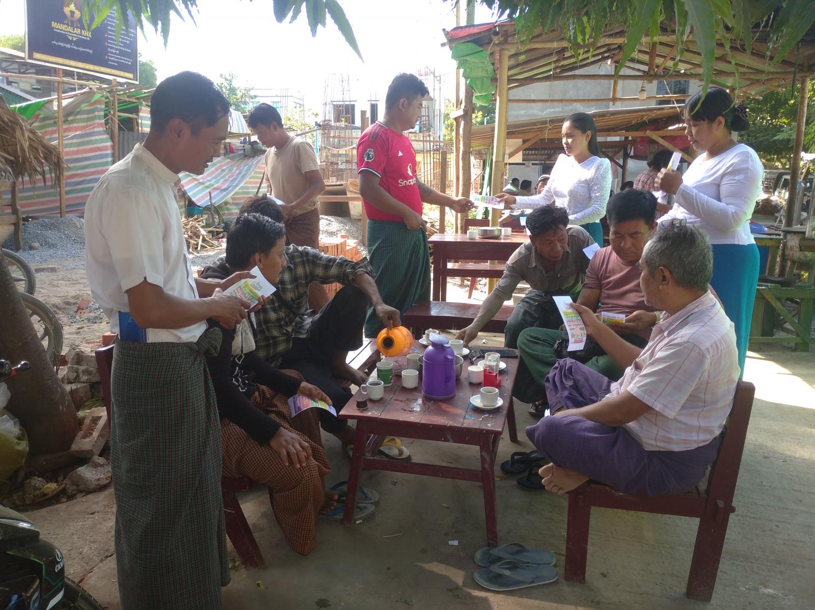 အဆိုပါ ဒို့အတူတူမဲပေးကြမယ် အသိပညာပေးလက်ကမ်းစာစောင် ဖြန့်ဝေခြင်းကို မြို့နယ်ပြန်ကြားရေးနှင့်ပြည်သူ့ဆက်ဆံရေးဦးစီးဌာန ဦးစီးအရာရှိ ဦးဘိုမောင်နှင့် ဝန်ထမ်းများက ဖြန့်ဝေပေးခဲ့ကြောင်းသိရသည်။