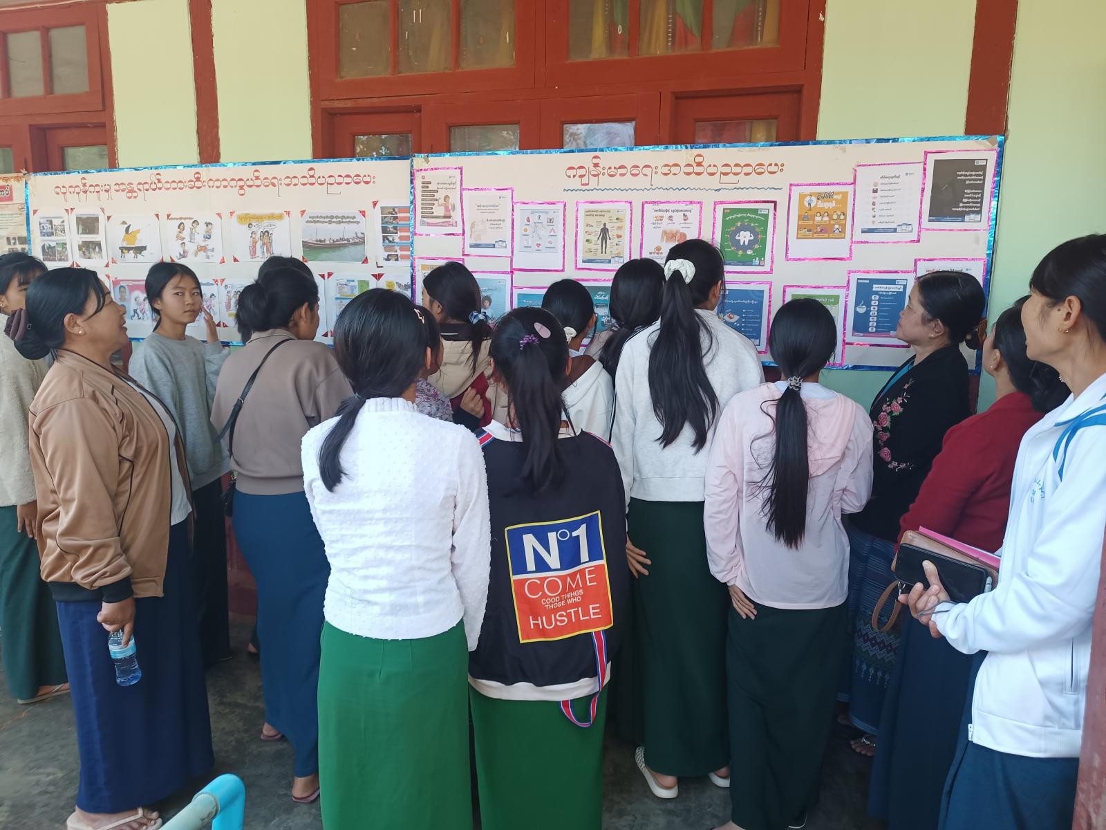ရှေးဦးစွာ ခရိုင်မိခင်နှင့်ကလေးစောင့်ရှောက်မှုကြီးကြပ်ရေးအဖွဲ့ဥက္ကဋ္ဌ ဒေါ်နန်းလီက အဖွင့်အမှာစကားပြောကြားပြီး မြို့နယ်ပြည်သူ့ကျန်းမာရေးဦးစီးဌာန၊ ကုသရေးဦးစီးဌာနမှူး ဒေါက်တာကျော်ဇင်ထွန်းက HIV/AIDS ရောဂါအကြောင်းဖြင့်လည်းကောင်း၊ မြို့မရဲစခန်းမှူး ဒုတိယရဲမှူးစောဝင်းက မူးယစ်ဆေးဝါးအန္တရာယ်အကြောင်းဖြင့်လည်းကောင်း အသိပညာပေးဟောပြောခဲ့သည်။ ထို့နောက် ကျောင်းသား၊ ကျောင်းသူများ သိရှိလိုသည်များ မေးမြန်းရာ တာဝန်ရှိသူများက ပြန်လည်ဖြေကြားခဲ့သည်။ ယင်းနောက် ပြန်ကြားရေးနှင့်ပြည်သူ့ဆက်ဆံရေးဦးစီးဌာနမှ ခင်းကျင်းပြသထသည့် ကျန်းမာရေးအသိပညာပေး၊ မူးဆေးဝါးအန္တရာယ်၊ လူကုန်ကူးမှုအန္တရာယ်၊ ယာဉ်စည်းကမ်း၊ လမ်းစည်းကမ်းများ စသည့်အသိပညာပေးနံရံကပ်စာစောင်နှင့် ဓာတ်ပုံပြပွဲကို ကျောင်းသား၊ ကျောင်းသူများက စိတ်ပါဝင်စားစွာ လေ့လာကြည့်ရှုခဲ့ကြောင်း သိရသည်။