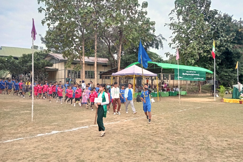 ထို့နောက် ပြိုင်ပွဲဝင်ကစားသမားများက ကွင်းအတွင်းမှ ပြန်လည်ထွက်ခွာကြပြီးနောက် အခြေခံပညာအလယ်တန်းဆင့် အမျိုးသားဘောလုံးပြိုင်ပွဲကိုကျင်းပရာ တာဝန်ခံခရိုင် ပညာရေးမှူး ဦးမြင့်ဝင်းက ဘောလုံးကန်၍ ဖွင့်လှစ်ပေးခဲ့ပြီး အ.ထ.က(မြို့မ)အသင်းနှင့် အ.မ.က(မြောက်ကုန်း) အသင်းတို့ စတင်ယှဉ်ပြိုင်ကစားကြရာ တစ်ဖက်တစ်ဂိုးစီဖြင့် သရေရလဒ်ထွက်ပေါ်ခဲ့သည်။