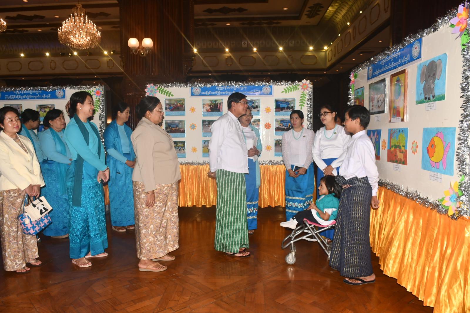 ဆက်လက်၍ ရန်ကုန်တိုင်းဒေသကြီး ဝန်ကြီးချုပ် ဦးစိုးသိန်း၏ ဇနီး ဒေါ်မော်မော်သန်းက ၂၀၂၄ ခုနှစ်၊ မတ်လမှ ဇူလိုင်လအထိ တရုတ်ပြည်သူ့သမ္မတနိုင်ငံ၊ လျောင်နင်ပြည်နယ်၊ ရှမ်းရန်မြို့နှင့် မလေးရှားနိုင်ငံ၊ ဆာဘားမြို့တို့၌ ပြုလုပ်ခဲ့သည့် (၉) ကြိမ်မြောက် အာရှကလေးများ အနုပညာပြပွဲတွင် ပန်းချီကား (၁) ချပ် ပေးပို့ပါဝင်ယှဉ်ပြိုင်ခဲ့ပြီး ပထမဆုရရှိခဲ့သည့် မသန်စွမ်းသက်ငယ်သင်တန်းကျောင်းမှ မသုဝဠာဦးအား ဂုဏ်ပြုချီးမြင့်ငွေများကို ပေးအပ်သည်။