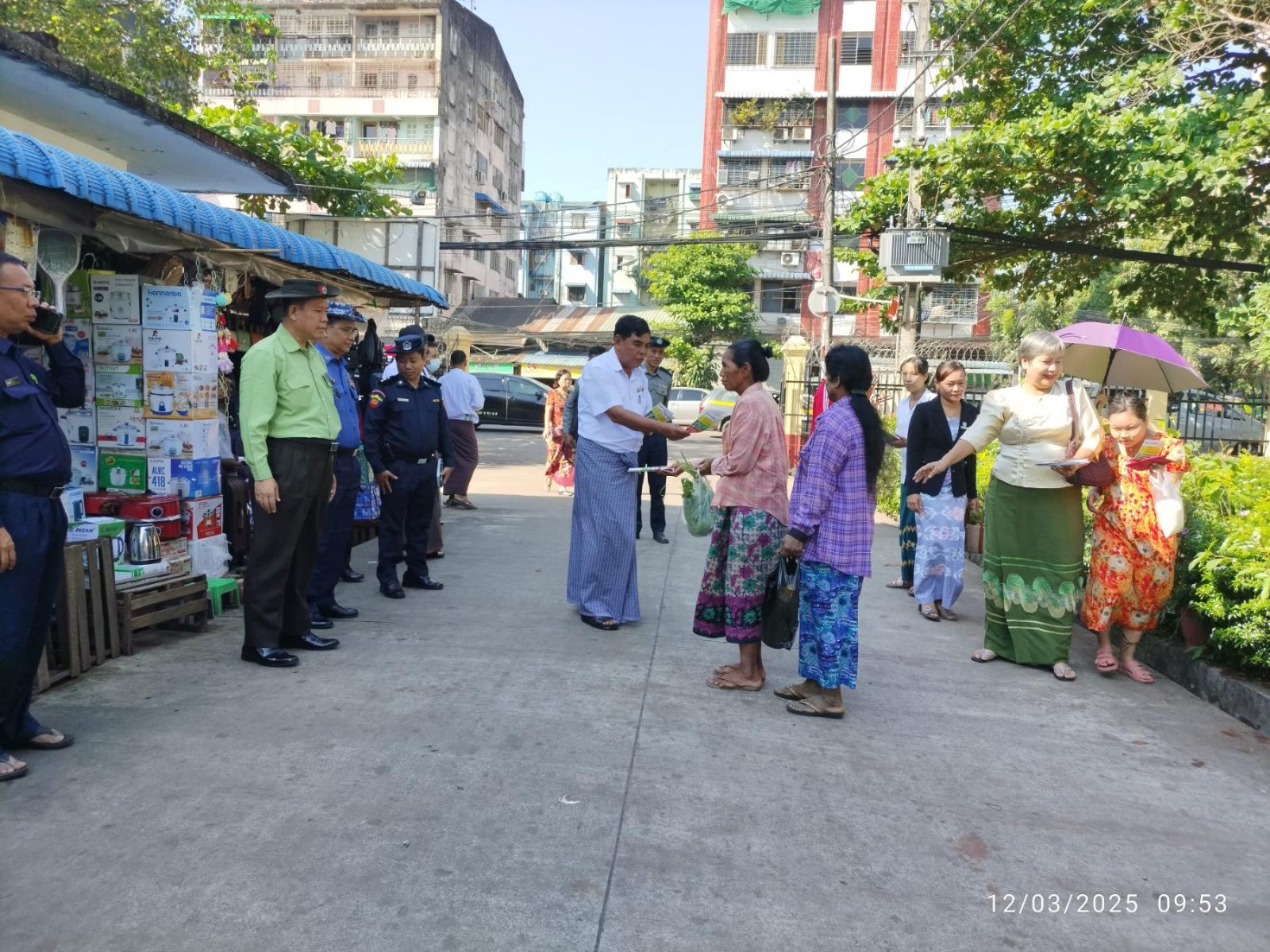 ထိုသို့ ဆောင်ရွက်ရာတွင် မြို့နယ်စီမံခန့်ခွဲရေးနှင့် အုပ်ချုပ်ရေးကော်မတီဥက္ကဋ္ဌ ဦးဇော်မိုးအောင်နှင့် အဖွဲ့၀င်များ၊ ဒုတိယမြို့နယ်အုပ်ချုပ်ရေးမှူး ဦးအောင်သူ၊ မြို့နယ်ရွေးကောက်ပွဲကော်မရှင်အဖွဲ့ခွဲဥက္ကဋ္ဌ ဦးအောင်သန်းနှင့် အဖွဲ့ဝင်များ၊ မြို့နယ်အဆင့်ဌာနဆိုင်ရာများ ပူးပေါင်း၍ ရွေးကောက်ပွဲဆိုင်ရာ အသိပညာပေးလှုံ့ဆော်မှုအဖြစ် “ဒို့အတူတူမဲပေးကြမယ်” လက်ကမ်းစာစောင်များကို မြို့နယ်အတွင်းရှိ လူစည်ကားရာနေရာများတွင် အခမဲ့ဖြန့်ဝေပေးခဲ့ကြသည်။