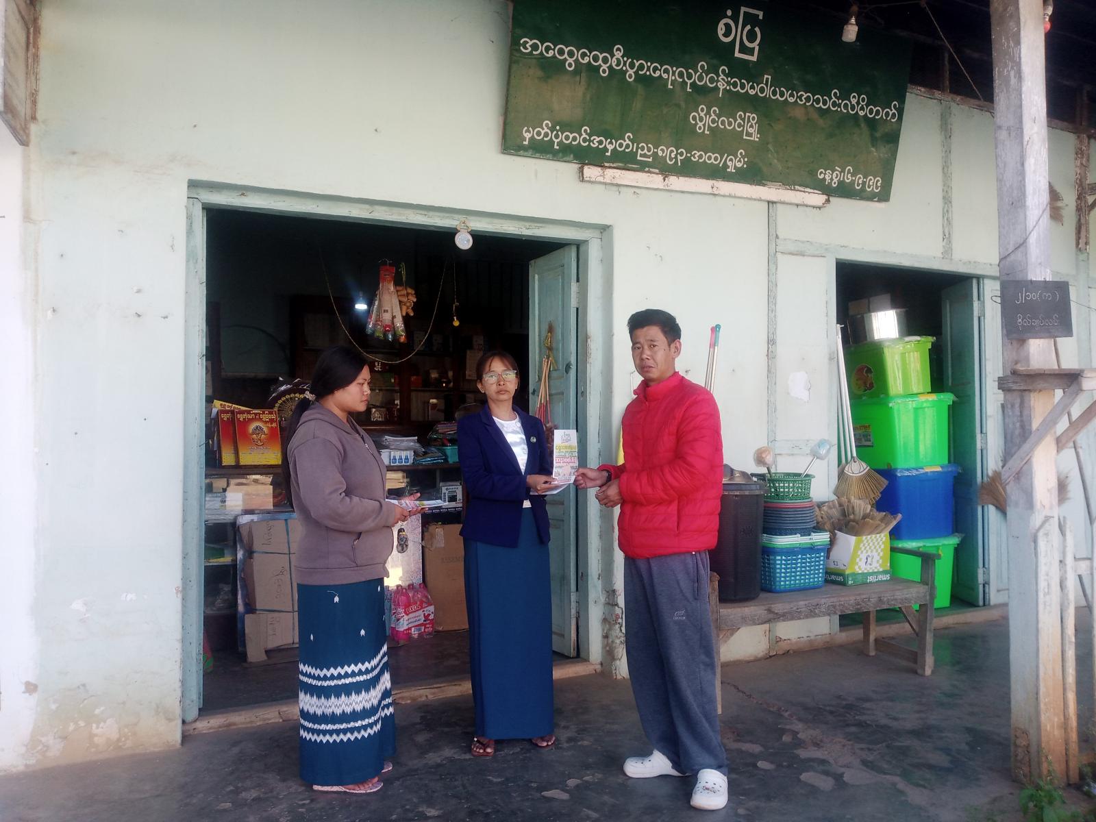 ထိုသို့ဖြန့်ဝေလျက်ရှိရာ ရှမ်းပြည်နယ်အတွင်းရှိ ကလောမြို့နယ်၊ လွိုင်လင်မြို့နယ်၊ မိုင်းဖြတ်မြို့နယ်နှင့် နမ့်ဆန်မြို့နယ်တို့တွင် ဒီဇင်ဘာ ၃ ရက်နှင့် ၄ ရက်နေ့များ၌ သက်ဆိုင်ရာမြို့နယ်ပြန်ကြားရေးနှင့်ပြည်သူ့ဆက်ဆံရေးဦးစီးဌာန ဝန်ထမ်းများ၊ မြို့နယ်အထွေထွေအုပ်ချုပ်ရေးဦးစီးဌာန ဝန်ထမ်းများ၊ မြို့နယ်အထွေထွေရွေးကောက်ပွဲကော်မရှင်အဖွဲ့ခွဲရုံးမှ တာဝန်ရှိသူများနှင့် မြို့နယ်အမျိုးသမီးရေးရာအဖွဲ့တို့ ပူးပေါင်း၍ လမ်းသွားလမ်းလာပြည်သူများနှင့် လူစည်ကားရာနေရာများတွင် ပြည်သူများ လက်ဝယ်အရောက် ဖြန့်ဝေပေးခဲ့သည်။