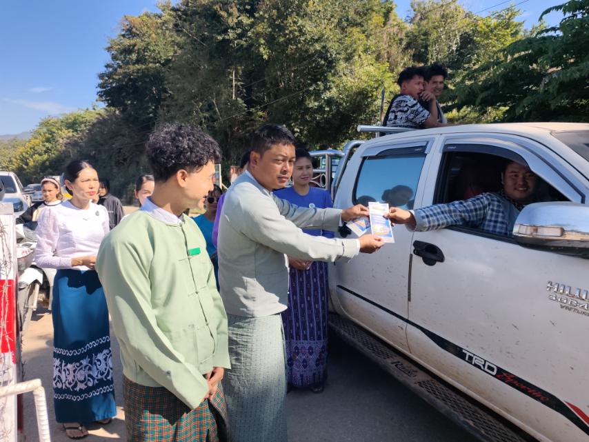 ၂၀၂၅ ခုနှစ် ဒီဇင်ဘာ (၂၈) ရက်တွင် ကျင်းပမည့် ပါတီစုံဒီမိုကရေစီအထွေထွေရွေးကောက်ပွဲတွင် ရှမ်းပြည်နယ်အတွင်းရှိ မဲပေးပိုင်ခွင့်ရှိသူ မဲဆန္ဒရှင်ပြည်သူများအားလုံး ပိုမိုပါဝင်မဲပေးနိုင်ရေးအတွက် "ဒို့အတူတူ မဲပေးကြမယ်" သတင်းစကားလက်ကမ်းစာစောင်များကို ဖြန့်ဝေလျက်ရှိသည်။
