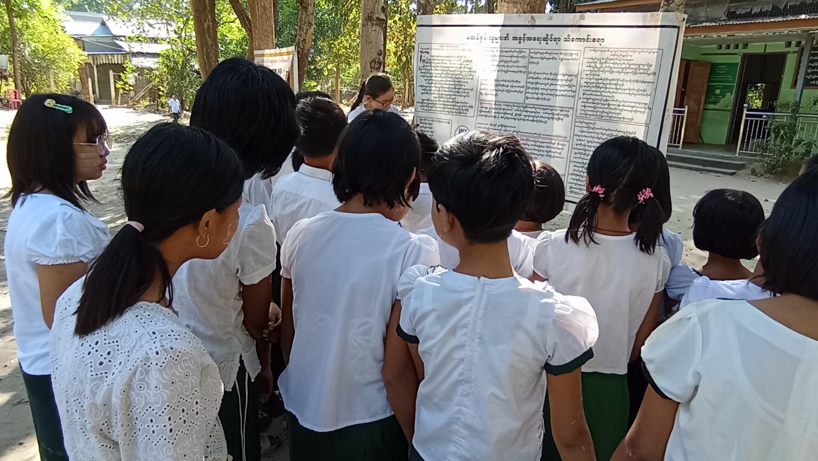 ထို့နောက် ပြန်ကြားရေးနှင့်ပြည်သူ့ဆက်ဆံရေးဦးစီးဌာနမှ ခင်းကျင်းပြသထားသော မသန်စွမ်းသူများ၏ အခွင့်အရေးများဆိုင်ရာ အသိပညာပေး နံရံကပ်စာစောင်နှင့် သုတ၊ ရသ စာအုပ် စာစောင်များအား ကျောင်းသား/ကျောင်းသူများက စိတ်ပါဝင်စားစွာဖြင့် ကြည့်ရှုလေ့လာခဲ့ကြကြောင်း သိရှိရသည်။
