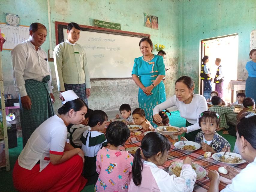 မြို့နယ်ပြည်သူ့ကျန်းမာရေးဌာနမှ ပဉ္ဓမအကြိမ်မြောက်အဖြစ် ဒီဇင်ဘာ ၁ ရက်နေ့မှ ၃ ရက်နေ့အထိ မြို့နယ်တွင်းရှိ အခြေခံပညာကျောင်း(၃၄၅)ကျောင်း၌ KG ကျောင်းသူ၊ ကျောင်းသားပေါင်း (၄၉၃၆) ဦးတို့အား ကျွေးမွေးခဲ့ရာ ကျောင်းသားကျောင်းသူများက အစာမစားမီ လက်ဆေးခြင်း၊ နေ့လည်စာတွင် အဏုအာဟာရမှုန့်များ ထည့်သွင်းအသုံးပြု၍ ကျွေးမွေးခြင်း၊ နေ့လယ်စာစားပြီးနောက် စနစ်မှန်သွားတိုက်ခြင်းတို့ကို ခရိုင်ပြည်သူ့ကျန်းမာရေးဦးစီးဌာနမှူး ဒေါက်တာနေခြည်ထက်ထက်လင်းအောင် ဦးဆောင်သော ကျန်းမာရေးဌာန ဝန်ထမ်းများက စနစ်တကျဆောင်ရွက်ပေးခဲ့ကြောင်း သိရသည်။