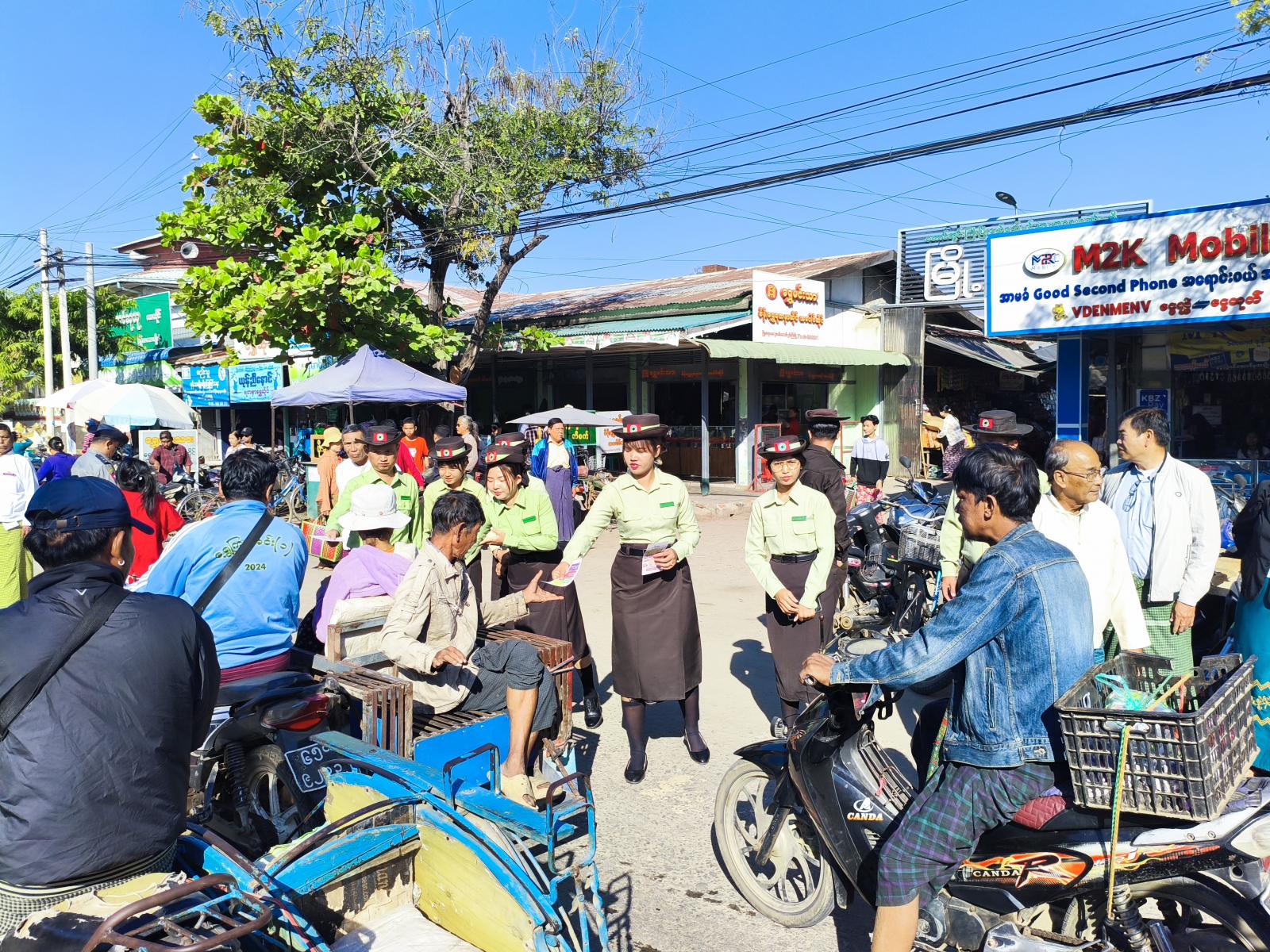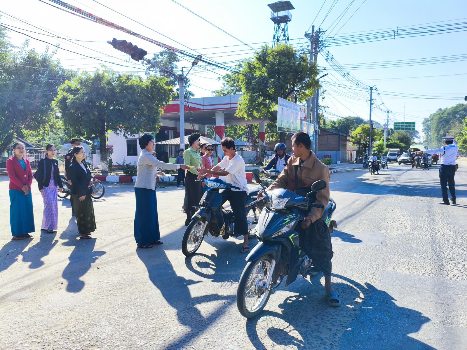 ပြန်ကြားရေးနှင့်ပြည်သူ့ဆက်ဆံရေးဦးစီးဌာနဝန်ထမ်းများက ပြည်သူများလက်ဝယ်အရောက် ဖြန့်ဝေပေးခဲ့ကြောင်း သိရသည်။
