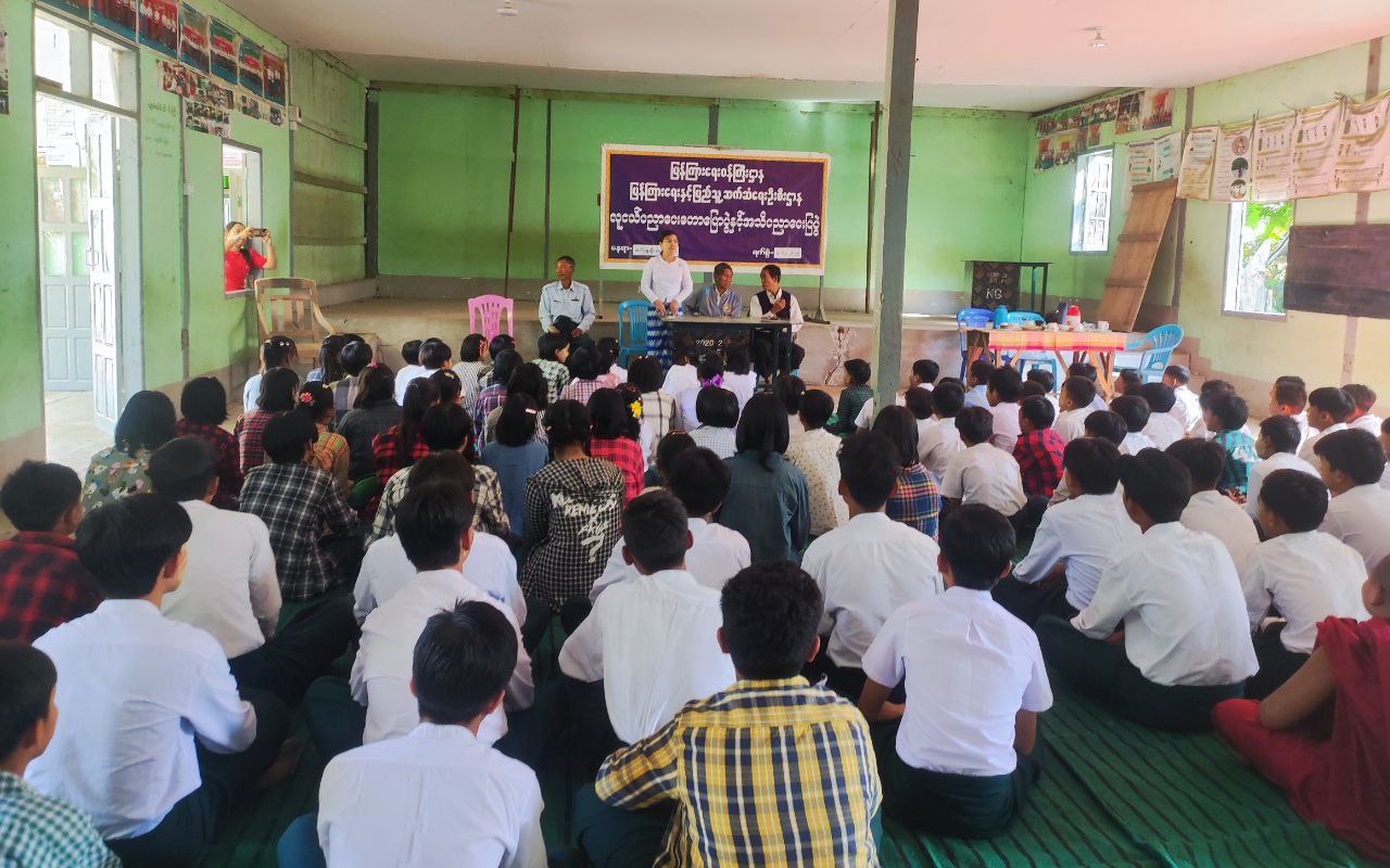 ထို့နောက် ကျောင်းသား၊ ကျောင်းသူများအား မြို့နယ်ပြန်ကြားရေးနှင့်ပြည်သူ့ဆက်ဆံရေးဦးစီးဌာနမှ အသိပညာပေး စာအုပ်စာစောင်များပြသရာ စိတ်ပါဝင်စားစွာ လေ့လာဖတ်ရှုခဲ့ကြောင်း သိရသည်။