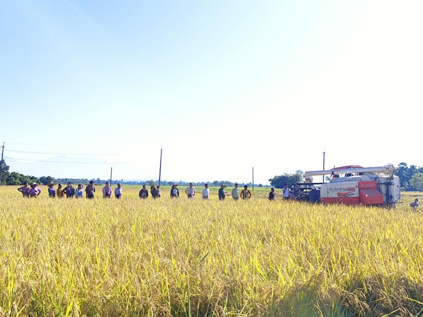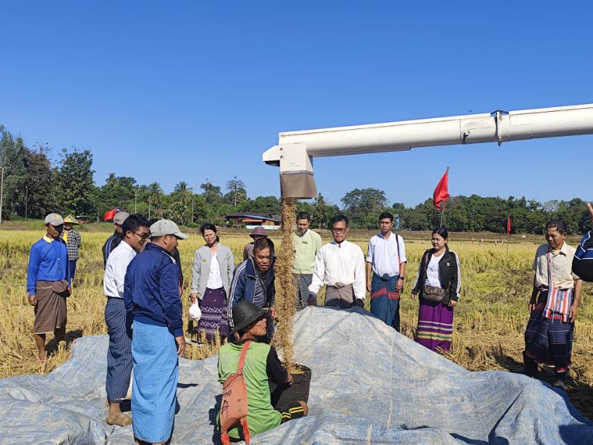 ကရင်ပြည်နယ်၊ ဘားအံခရိုင်၊ လှိုင်းဘွဲမြို့နယ်၊ ဒိုင်းပြကုန်းကျေးရွာ ကွင်းအမှတ်-၁၅၄၇၊ ဦးပိုင် အမှတ် (၁၃) ၊ မြေကွက်အမှတ် (၁၂၇) ရှိ တောင်သူဒေါ်နှင်းမှုံ ပိုင်ဆိုင်သော လယ်မြေအကွက်အကျယ် (၀ ဒဿမ ၁၀) ဧက၌ မိုးစပါး (အောင်နိုင်တိုးမျိုး) စံကွက်ရိတ်သိမ်းခြင်းကို ယနေ့နံနက် ၉ နာရီက ဆောင်ရွက်ခဲ့ရာ တစ်ဧကအထွက်နှုန်း (၁၁၅ ဒဿမ၇၀) တင်း ထွက်ရှိခဲ့ကြောင်း သိရသည်။