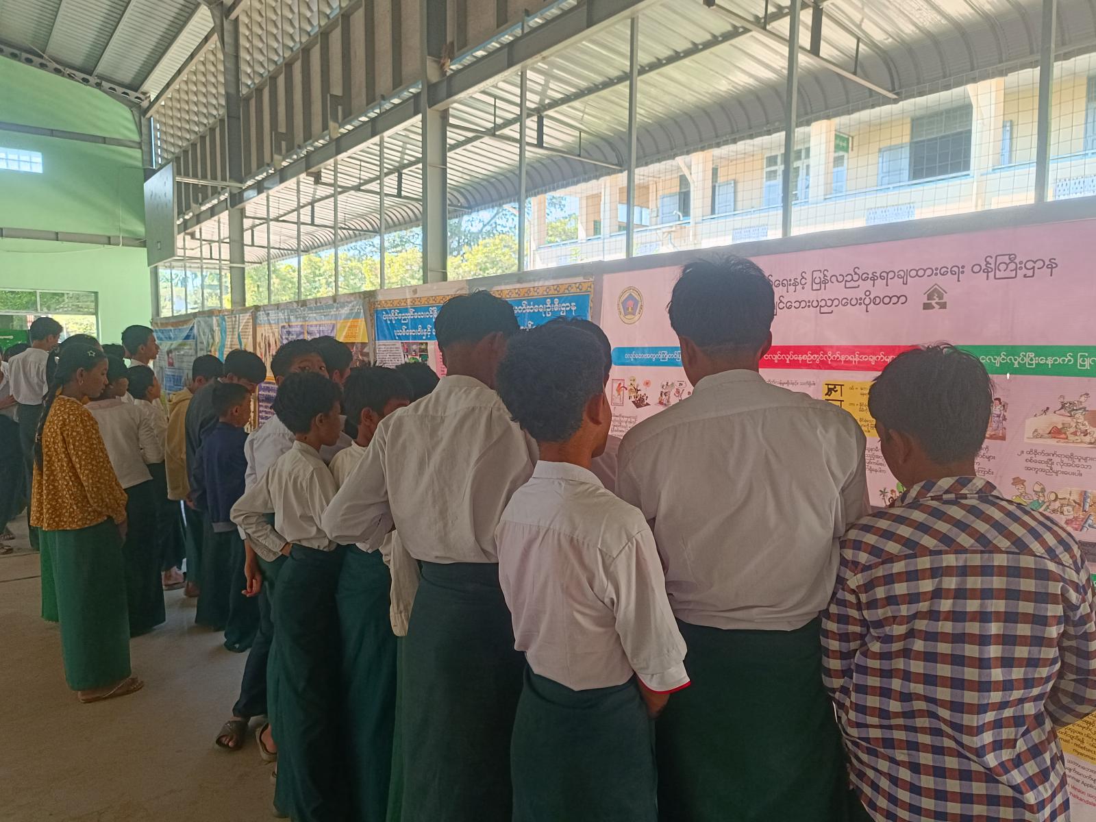 ထို့နောက် ပြန်ကြားရေးနှင့်ပြည်သူ့ဆက်ဆံရေးဦးစီးဌာနမှ ဦးစီးအရာရှိနှင့် ဝန်ထမ်းများက ကျောင်းသား၊ကျောင်းသူများအား အသိပညာဗဟုသုတရရှိစေမည့် စာအုပ်/စာစောင်များအားဖတ်ရှုစေခြင်း၊ ကလေးအလုပ်သမားပပျောက်ရေး အသိပညာပေးနံရံကပ်စာစောင်၊ မူးယစ်ဆေးဝါးနှင့်ပတ်သက်သည့် အသိပညာပေးနံရံကပ်စာစောင်နှင့် သဘာဝဘေးအန္တရာယ်နှင့်ပတ်သက်သည့် အသိပညာပေးနံရံကပ်စာစောင်များပြသခြင်းတို့ဆောင်ရွက်ခဲ့ရာ ကျောင်းသား/ကျောင်းသူများကစိတ်ပါ၀င်စားစွာဖြင့် ကြည့်ရှုလေ့လာမှတ်သားခဲ့ကြကြောင်း သိရသည်။