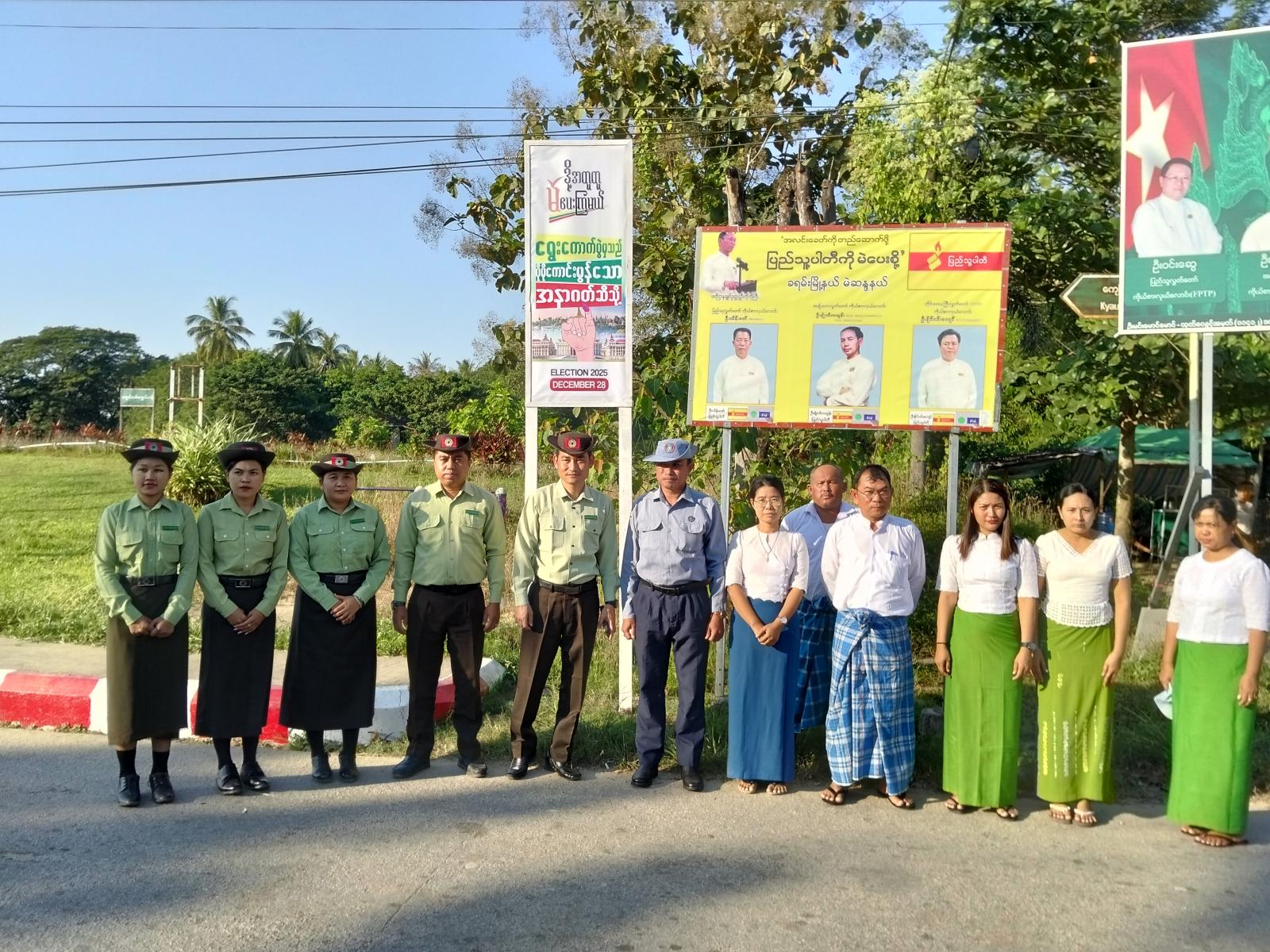 ထိုသို့ ဆောင်ရွက်ကြရာတွင် Billboard များအား မြို့နယ်လူစည်ကားရာနေရာ ၁၀ နေရာတွင် မြို့နယ်စီမံခန့်ခွဲရေးနှင့် အုပ်ချုပ်ရေးကော်မတီဥက္ကဋ္ဌ ဦးအောင်ရဲနှင့် အဖွဲ့၀င်များ၊ မြို့နယ်ပြန်ကြားရေးနှင့်ပြည်သူ့ဆက်ဆံရေးဦးစီးဌာန၊ မြို့နယ်စည်ပင်သာယာအဖွဲ့နှင့် ဌာနဆိုင်ရာများ၊ ရပ်ကွက်အုပ်ချုပ်ရေးမှူးနှင့် တာ၀န်ရှိသူများက မကြာမီကျင်းပမည့် ပါတီစုံဒီမိုကရေစီအထွေထွေရွေးကောက်ပွဲတွင် ပြည်သူအားလုံးပါဝင်၍ ဆန္ဒမဲပေးနိုင်ရေး အသိပညာပေးနှိုးဆော်သည့် “ဒို့အတူတူမဲပေးကြမယ်” Billboard များ စိုက်ထူပေးခဲ့ကြောင်း သိရသည်။