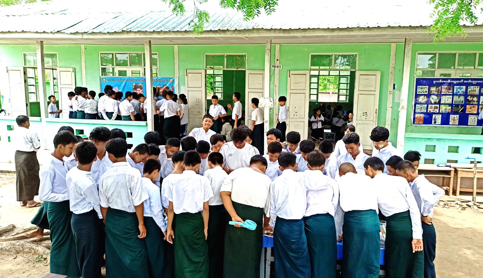 ထို့နောက် ကျောင်းသား၊ ကျောင်းသူများက ခင်းကျင်းပြသထားသည့် မူးယစ်ဆေးဝါးအန္တရာယ်နှင့် ကလေးအလုပ်သမားပပျောက်ရေး အသိပညာပေးနံရံကပ်စာစောင်၊ စာအုပ်စာစောင်များ စိတ်ပါဝင်စားစွာ ကြည့်ရှုလေ့လာခဲ့ကြကြောင်း သိရသည်။